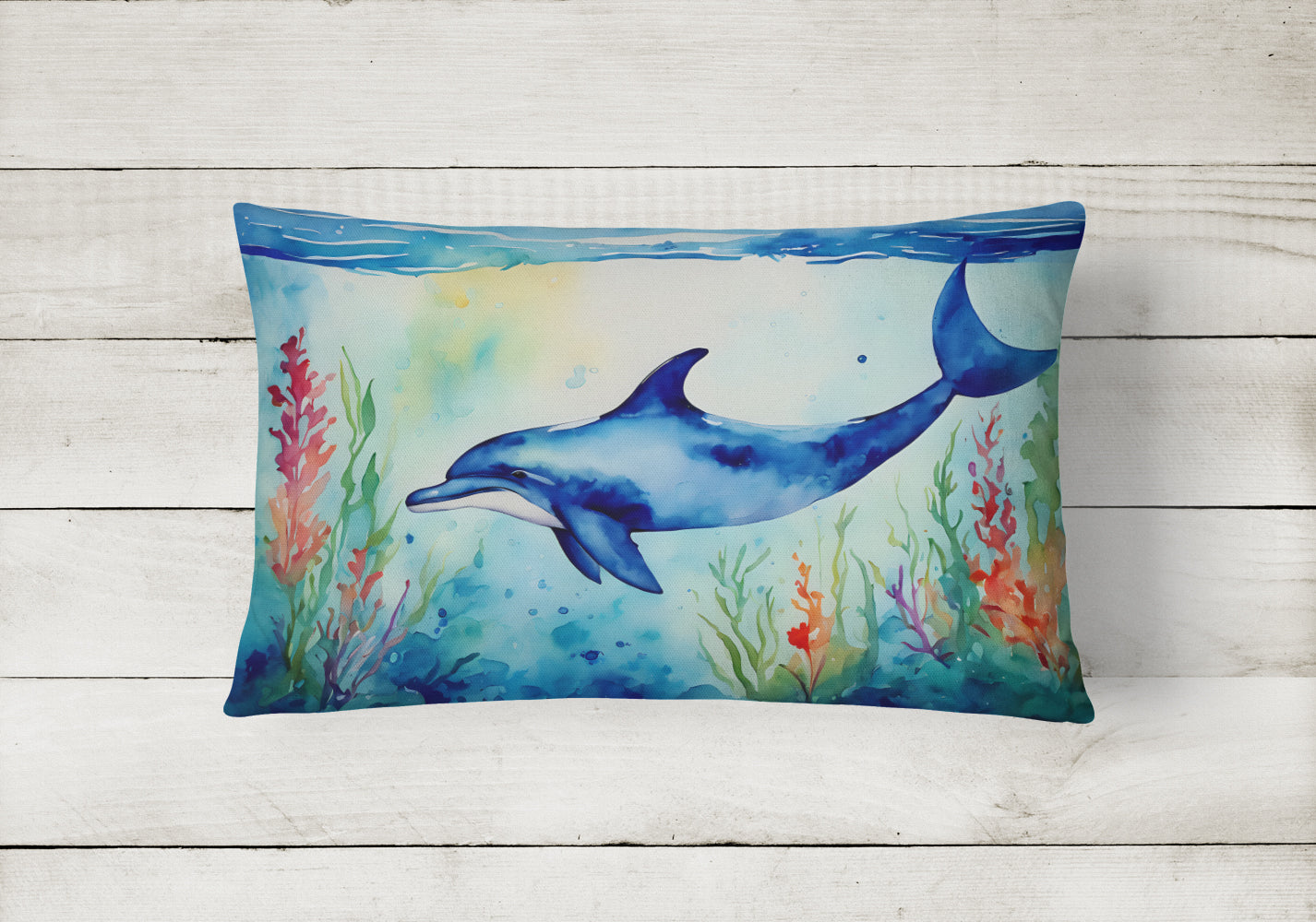 Throw Pillow featuring breed specific Dolphin artwork. Embrace the fusion of comfort and style with Caroline's Treasures Fabric Decorative Pillow. This 12x16 inch outdoor pillow is designed to complement your patio furniture, adding a splash of color and artistry to your outdoor setting. Constructed with a 100% Polyester Fabric pillow sham filled with a plush pillow form, this cushion is as comfortable as it is durable. Our outdoor pillow utilizes a novel fabric, meticulously woven for enhanced water resistance. This soft canvas material is equally suited for your indoor couch as well as outdoor settings such as the patio, porch, or veranda. To ensure enduring vibrance, we employ colorfast dyes resistant to fading even when subjected to weather elements. The making of this pillow involves the delicate sewing together of three fabric pieces to create a sham, into which a polyester insert is carefully placed. The result is an overstuffed pillow that tenaciously holds its shape. With both the sham and the pillow insert crafted in the United States, these handmade pillows are a testament to superior local craftsmanship. Note that as these pillows are handmade, sizes may slightly vary, enhancing their unique appeal. Enjoy comfort in style with Caroline's Treasures Fabric Decorative Pillow.