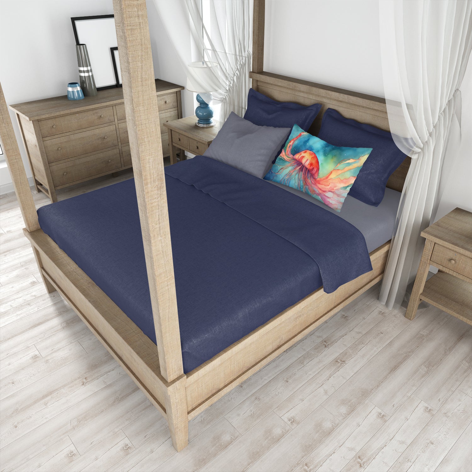 Standard Pillowcase featuring breed specific Jellyfish artwork. Experience an upgrade in your sleeping comfort with our Fabric Standard Pillowcase, designed to balance style, comfort, and practicality. Showcasing vibrant artwork on the front and a standard white on the back, this pillowcase is more than a functional item�it's an expression of your personal style. Crafted from premium moisture-wicking material, our pillowcase ensures a pleasant sleeping experience. The breathable performance fabric allows for excellent air circulation, keeping you cool and comfortable throughout the night while also demonstrating exceptional quality. This pillowcase, measuring 30 x 20.5 inches with a slender 0.15 inch thickness, and weighing only 0.25 lbs, fits a standard pillow perfectly. Maintaining our pillowcase is hassle-free. It requires no ironing�simply wash in cold water and dry at medium heat. Bring art and luxury into your bedroom with our Fabric Standard Pillowcase. Its unique design and top-tier fabric contribute to a relaxing and rejuvenating sleep experience. Brighten your bedroom decor while enhancing your sleep with our high-performance pillowcase.