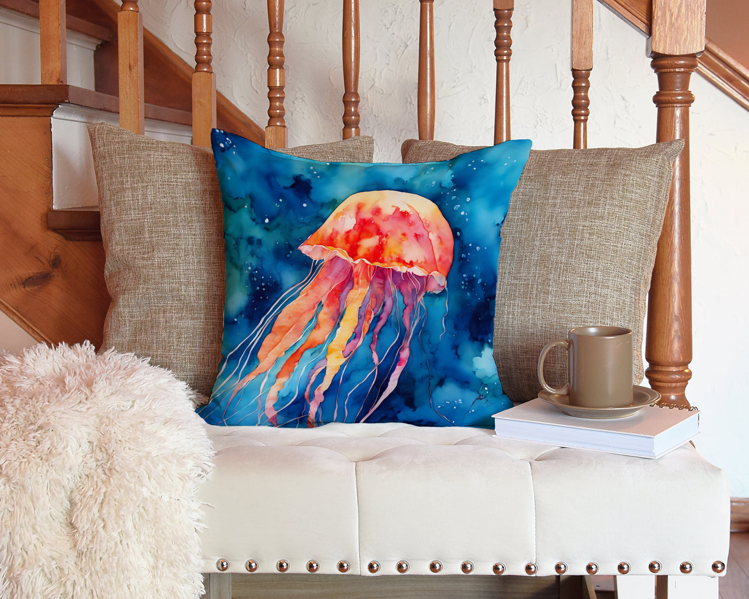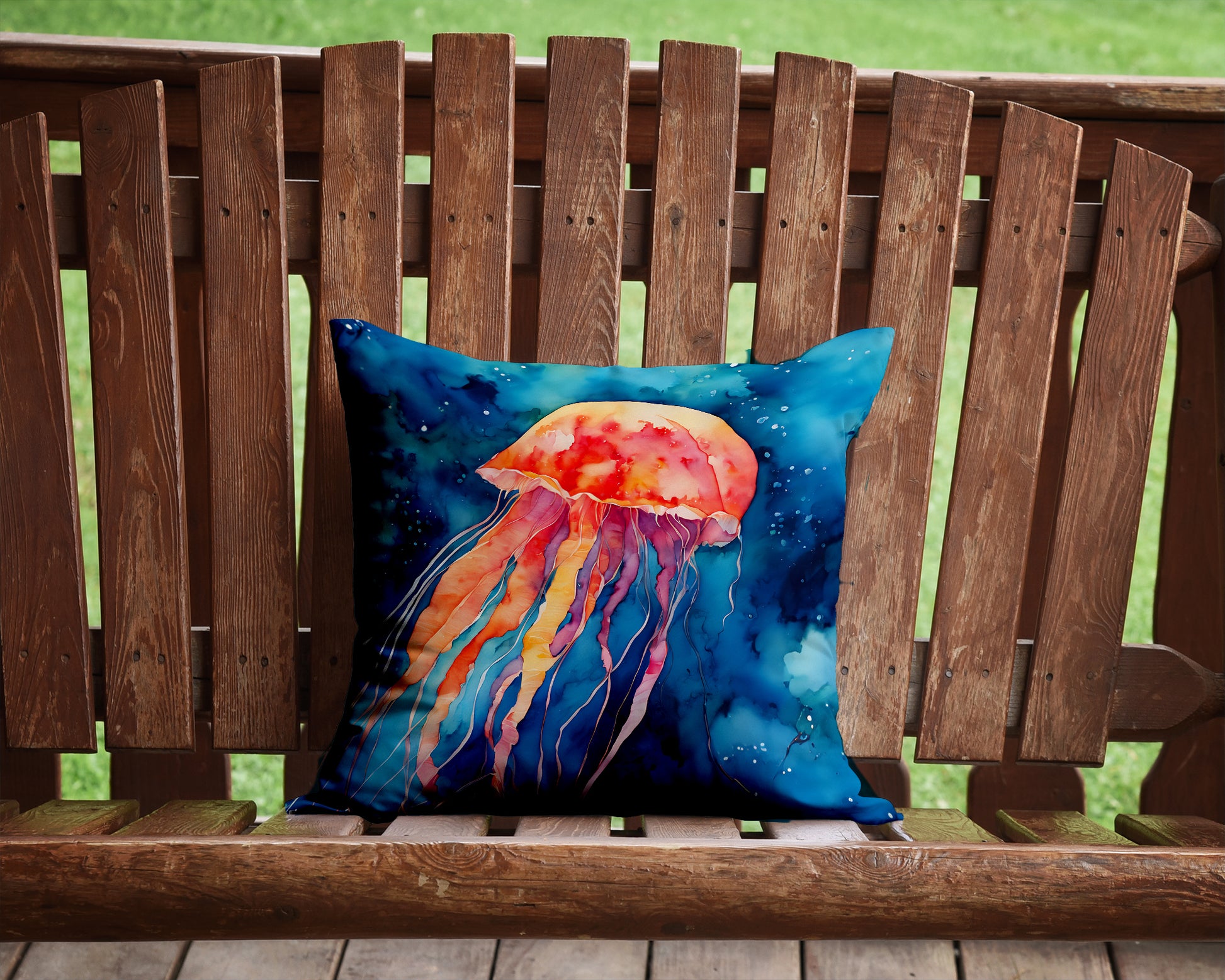 Throw Pillow featuring breed specific Jellyfish artwork. Add a touch of vibrancy and comfort to your outdoor seating with Caroline's Treasures Fabric Decorative Pillow. Measuring approximately 14 inches by 14 inches, this outdoor pillow is crafted to elevate the appeal of your patio furniture, infusing it with vivid color and artistic flair. The pillow includes a 100% Polyester Fabric sham filled with a quality pillow form to provide superior comfort. Innovatively made from our brand new material, specifically woven for its water resistance, this pillow is designed for durability. The soft canvas fabric offers versatility in use, fit for your indoor couch or your outdoor patio, porch, or veranda. The fabric is dyed with colorfast dyes built for resilience against weather conditions, ensuring the pillow retains its beauty over time. Constructed by sewing three fabric pieces to create a sham, the polyester insert is then nestled inside to form the pillow, resulting in an overstuffed pillow that maintains its shape. Both the sham and the pillow insert are proudly made in the United States. As the pillows are handcrafted, there may be minor variations in size, further enhancing their unique charm. Experience comfort in style with Caroline's Treasures Fabric Decorative Pillow.
