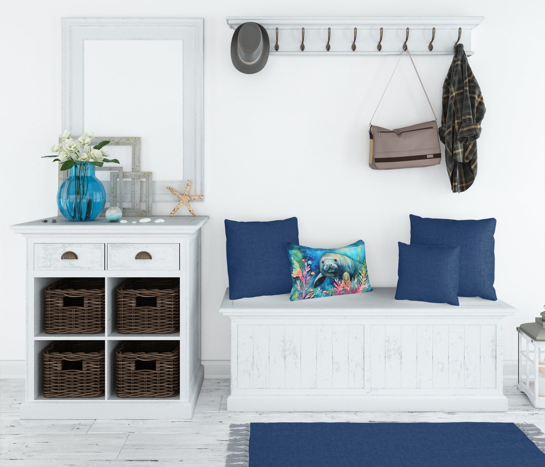 Throw Pillow featuring breed specific Manatee artwork. Embrace the fusion of comfort and style with Caroline's Treasures Fabric Decorative Pillow. This 12x16 inch outdoor pillow is designed to complement your patio furniture, adding a splash of color and artistry to your outdoor setting. Constructed with a 100% Polyester Fabric pillow sham filled with a plush pillow form, this cushion is as comfortable as it is durable. Our outdoor pillow utilizes a novel fabric, meticulously woven for enhanced water resistance. This soft canvas material is equally suited for your indoor couch as well as outdoor settings such as the patio, porch, or veranda. To ensure enduring vibrance, we employ colorfast dyes resistant to fading even when subjected to weather elements. The making of this pillow involves the delicate sewing together of three fabric pieces to create a sham, into which a polyester insert is carefully placed. The result is an overstuffed pillow that tenaciously holds its shape. With both the sham and the pillow insert crafted in the United States, these handmade pillows are a testament to superior local craftsmanship. Note that as these pillows are handmade, sizes may slightly vary, enhancing their unique appeal. Enjoy comfort in style with Caroline's Treasures Fabric Decorative Pillow.