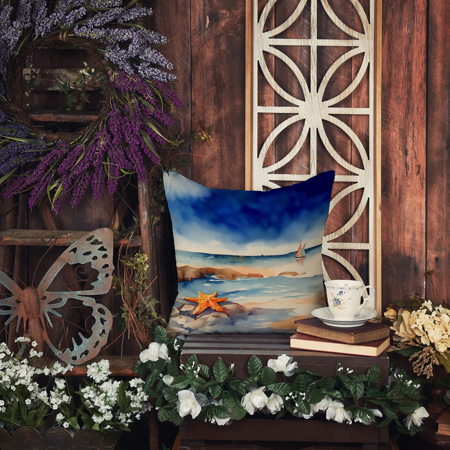 Throw Pillow featuring breed specific Starfish artwork. Add a touch of vibrancy and comfort to your outdoor seating with Caroline's Treasures Fabric Decorative Pillow. Measuring approximately 14 inches by 14 inches, this outdoor pillow is crafted to elevate the appeal of your patio furniture, infusing it with vivid color and artistic flair. The pillow includes a 100% Polyester Fabric sham filled with a quality pillow form to provide superior comfort. Innovatively made from our brand new material, specifically woven for its water resistance, this pillow is designed for durability. The soft canvas fabric offers versatility in use, fit for your indoor couch or your outdoor patio, porch, or veranda. The fabric is dyed with colorfast dyes built for resilience against weather conditions, ensuring the pillow retains its beauty over time. Constructed by sewing three fabric pieces to create a sham, the polyester insert is then nestled inside to form the pillow, resulting in an overstuffed pillow that maintains its shape. Both the sham and the pillow insert are proudly made in the United States. As the pillows are handcrafted, there may be minor variations in size, further enhancing their unique charm. Experience comfort in style with Caroline's Treasures Fabric Decorative Pillow.