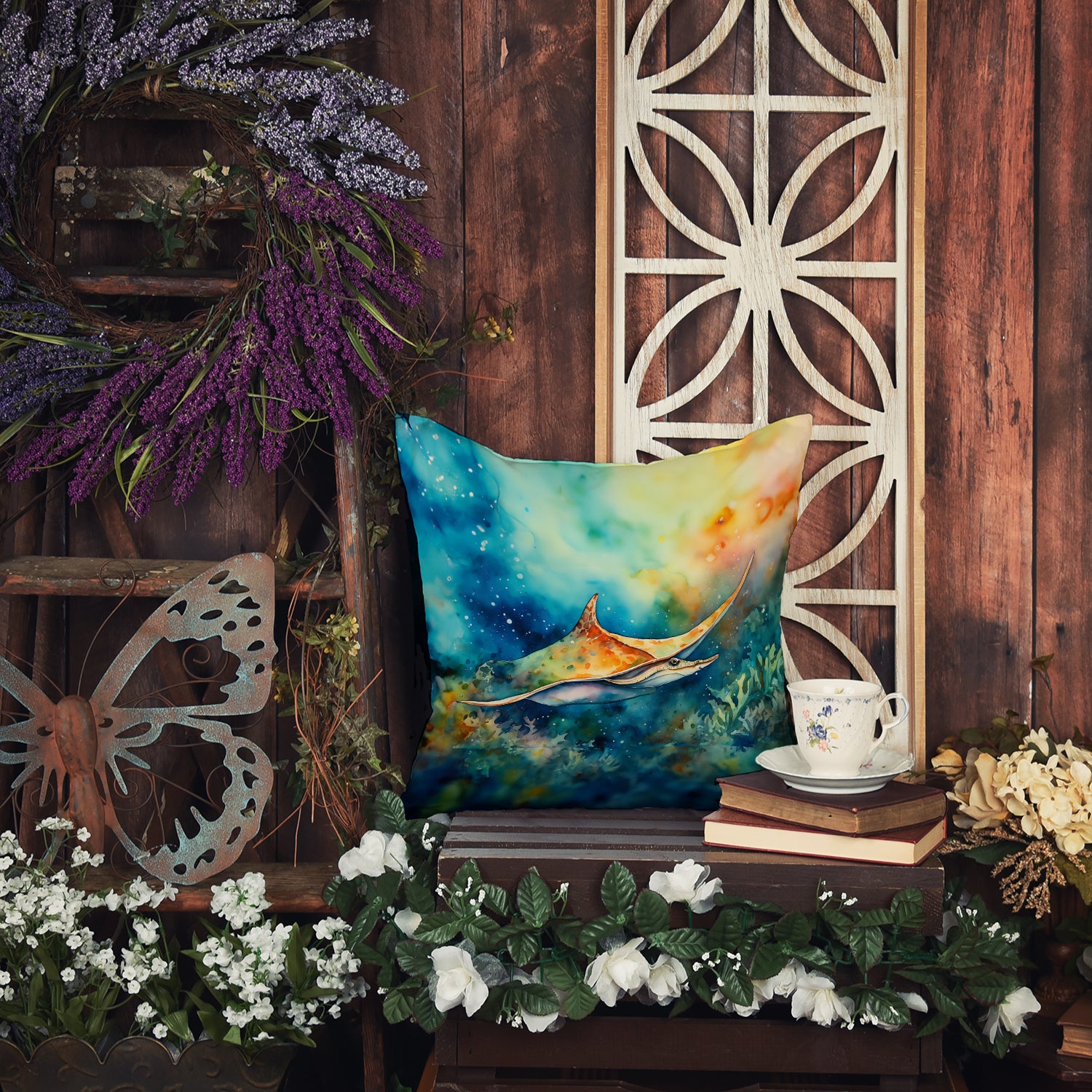 Throw Pillow featuring breed specific Sting Ray artwork. Add a touch of vibrancy and comfort to your outdoor seating with Caroline's Treasures Fabric Decorative Pillow. Measuring approximately 14 inches by 14 inches, this outdoor pillow is crafted to elevate the appeal of your patio furniture, infusing it with vivid color and artistic flair. The pillow includes a 100% Polyester Fabric sham filled with a quality pillow form to provide superior comfort. Innovatively made from our brand new material, specifically woven for its water resistance, this pillow is designed for durability. The soft canvas fabric offers versatility in use, fit for your indoor couch or your outdoor patio, porch, or veranda. The fabric is dyed with colorfast dyes built for resilience against weather conditions, ensuring the pillow retains its beauty over time. Constructed by sewing three fabric pieces to create a sham, the polyester insert is then nestled inside to form the pillow, resulting in an overstuffed pillow that maintains its shape. Both the sham and the pillow insert are proudly made in the United States. As the pillows are handcrafted, there may be minor variations in size, further enhancing their unique charm. Experience comfort in style with Caroline's Treasures Fabric Decorative Pillow.