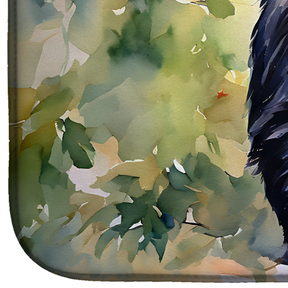 Dish Drying Mat featuring breed specific Chimpanzee artwork. Say goodbye to messy countertops and soggy dish towels with our innovative dish drying mat. Our high-quality dish drying pad is designed to keep your countertops dry while offering a stylish and efficient solution. Whether you're air drying dishes, glasses, stemware, silverware, pots, pans, bottles, or even fruits and vegetables, our dish mat is the perfect choice. The 14 inches x 22 inches size fits most counters and dish drying racks, and the non-slip design ensures stability. Made with water-absorbent polyester and a polyurethane foam insert, our dish drying mat is not only functional but also durable. It's machine washable and printed in the USA for long-lasting use. The beautiful artwork adds flair to your kitchen decor, making it a perfect housewarming gift or present for any occasion. Upgrade your kitchen experience with our absorbent and versatile dish drying mat.