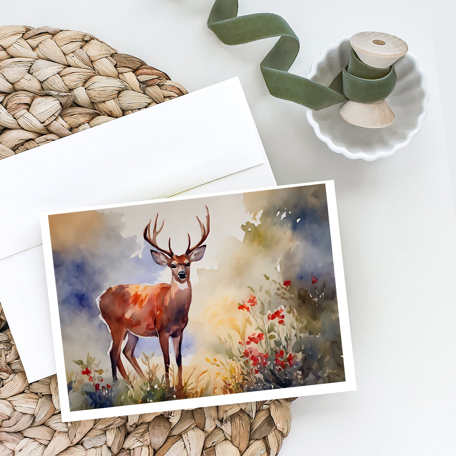 Greeting Cards Pack of 8 featuring breed specific Deer artwork. Celebrate special moments with Caroline's Treasures Printed Greeting Card Pack. This pack includes eight beautifully folded 5x7 cards, accompanied by eight matching white envelopes. With blank interiors, these cards provide ample space for your personalized messages and heartfelt holiday greetings. Each card features captivating full-color artwork, meticulously printed in our facility on high-quality 80 lb cover stock or 216 GSM. The super smooth finish of the white cards enhances the visual impact of the artwork, creating a truly stunning presentation. Designed by our talented in-house artists or licensed artists, the artwork on these cards showcases their creativity and attention to detail. From vibrant illustrations to captivating designs, each card tells its own unique story. Whether it's for birthdays, anniversaries, holidays, or any special occasion, Caroline's Treasures Greeting Card Pack is the perfect way to convey your heartfelt sentiments. Share joy, love, and warm wishes with these exquisite cards and make every moment unforgettable.