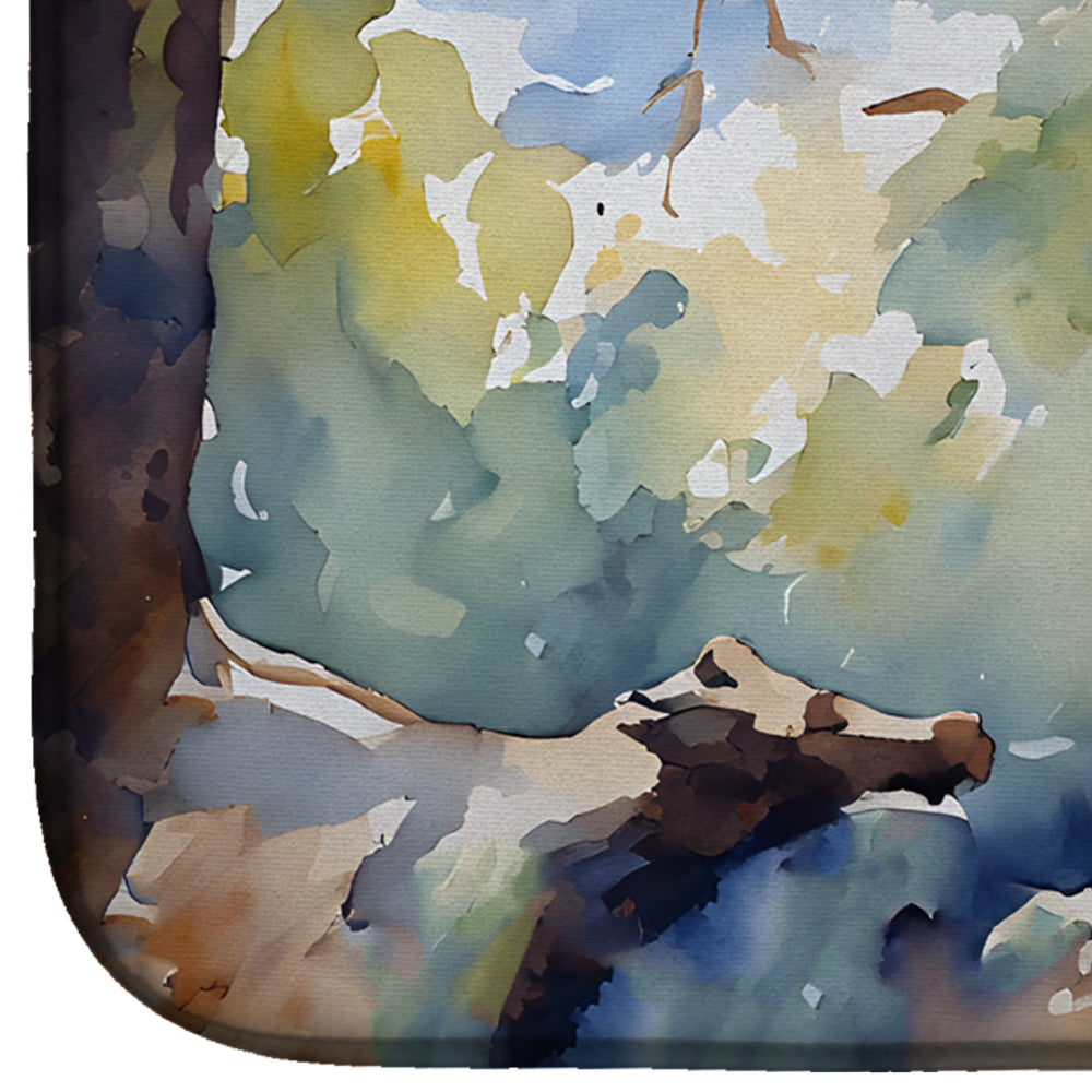 Dish Drying Mat featuring breed specific Leopard artwork. Say goodbye to messy countertops and soggy dish towels with our innovative dish drying mat. Our high-quality dish drying pad is designed to keep your countertops dry while offering a stylish and efficient solution. Whether you're air drying dishes, glasses, stemware, silverware, pots, pans, bottles, or even fruits and vegetables, our dish mat is the perfect choice. The 14 inches x 22 inches size fits most counters and dish drying racks, and the non-slip design ensures stability. Made with water-absorbent polyester and a polyurethane foam insert, our dish drying mat is not only functional but also durable. It's machine washable and printed in the USA for long-lasting use. The beautiful artwork adds flair to your kitchen decor, making it a perfect housewarming gift or present for any occasion. Upgrade your kitchen experience with our absorbent and versatile dish drying mat.