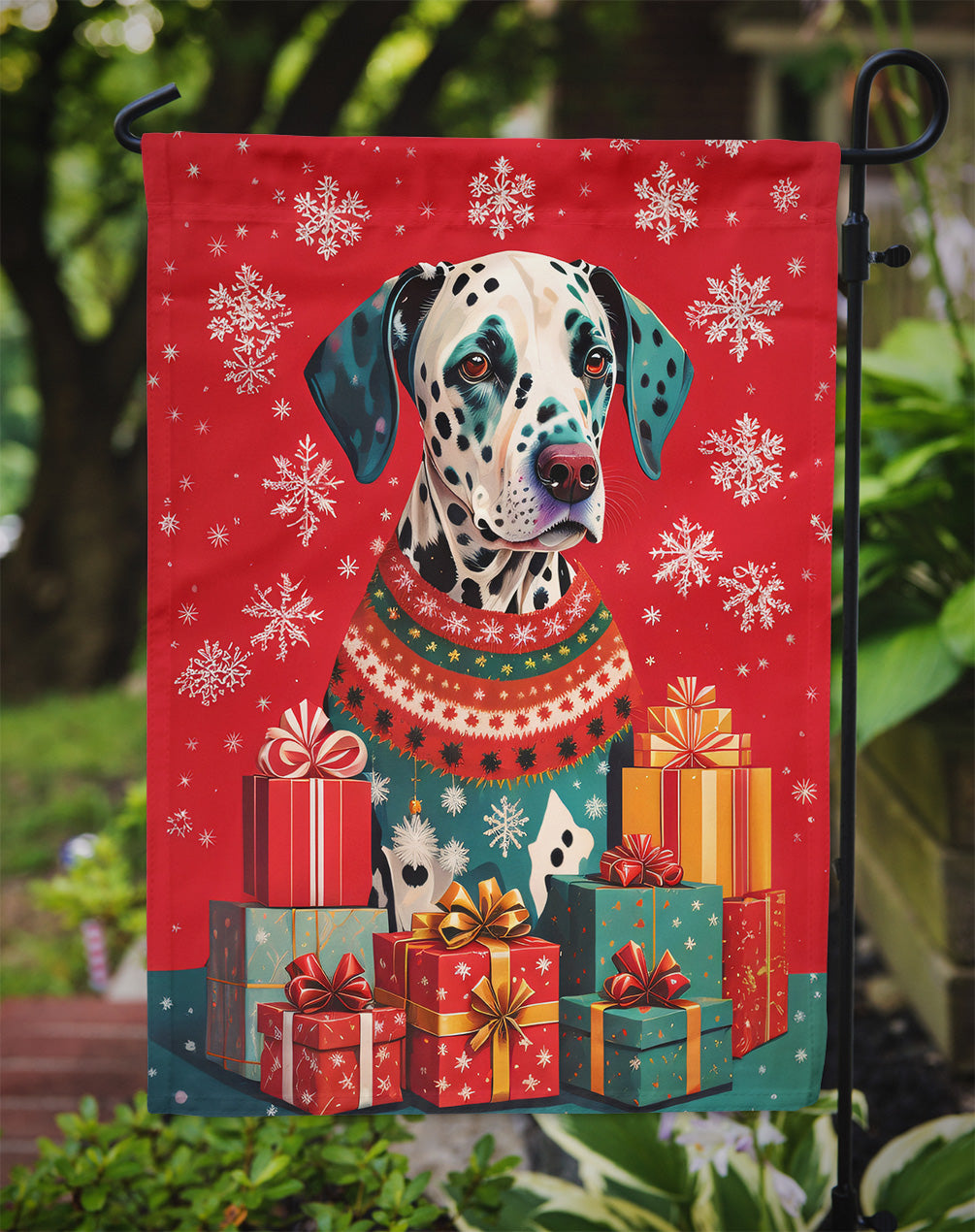 Garden Flag featuring breed specific Dalmatian artwork. Celebrate Christmas with this Christmas Garden Flag. Enhance the beauty of your garden, patio, or yard with Caroline's Treasures Decorative Garden Flag, proudly made in the USA. Crafted from two pieces of thick, double-sided polyester fabric, this 2-ply garden flag is designed to withstand various weather conditions, making it water-resistant and weatherproof. Featuring correctly readable words on both sides, this garden flag offers a delightful visual experience from any angle. With its heavier weight, it stands out among other garden flags, ensuring stability and durability even in wind, rain, and snow. Measuring approximately 11 1/4 inches by 15 1/2 inches, this flag allows you to personalize your outdoor decor. It comes with a 1 1/2-inch sleeve sewn in, allowing easy attachment to any standard garden flag stand or garden size porch hanger (sold separately). Make a statement in your outdoor space with Caroline's Treasures Decorative Garden Flag, a vibrant and high-quality flag that adds color and personality to your surroundings. Proudly made in the USA, it's a symbol of quality craftsmanship and attention to detail.