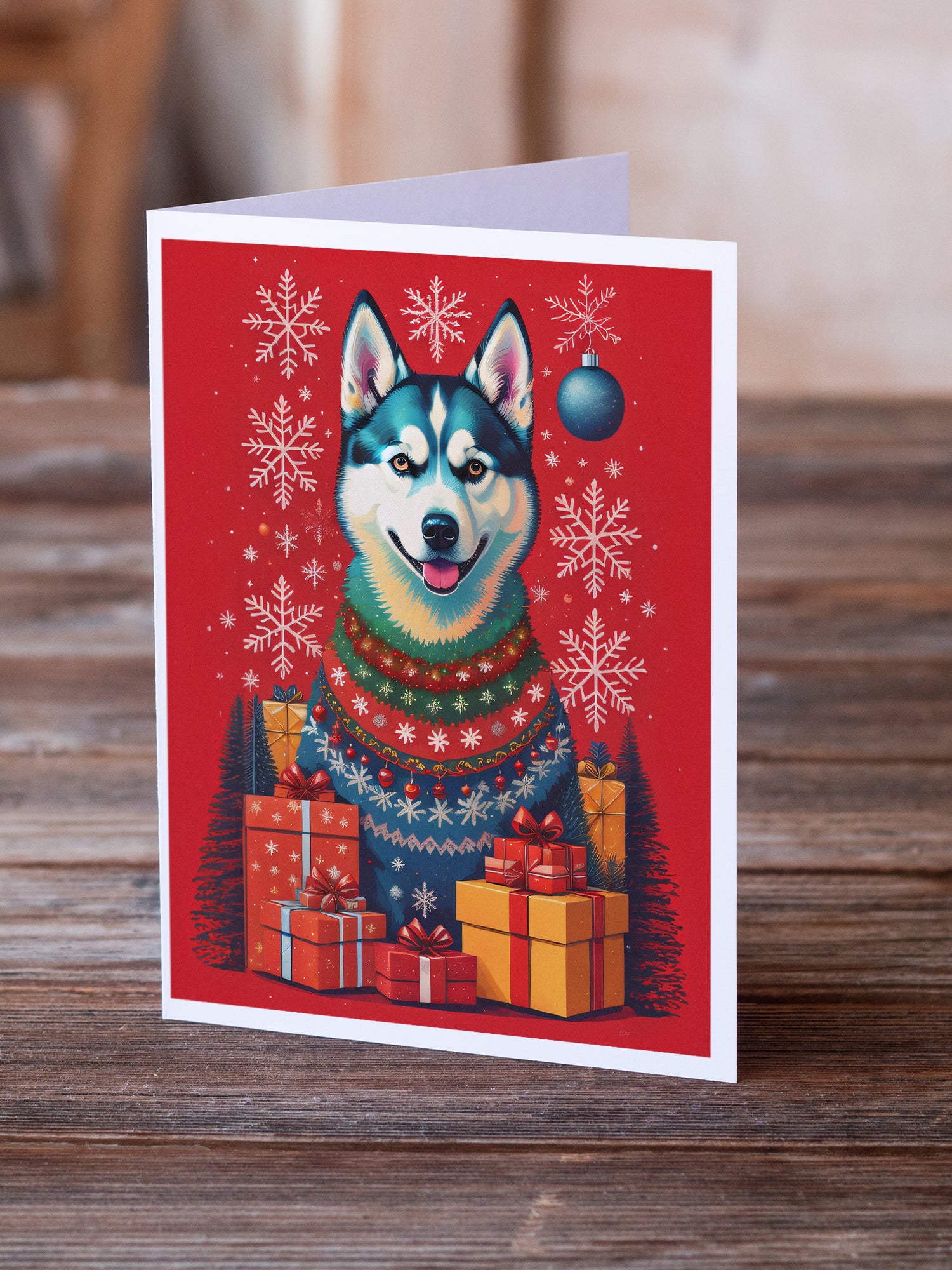 Greeting Cards Pack of 8 featuring breed specific Siberian Husky artwork. Celebrate Christmas with this Christmas . Celebrate special moments with Caroline's Treasures Printed Greeting Card Pack. This pack includes eight beautifully folded 5x7 cards, accompanied by eight matching white envelopes. With blank interiors, these cards provide ample space for your personalized messages and heartfelt holiday greetings. Each card features captivating full-color artwork, meticulously printed in our facility on high-quality 80 lb cover stock or 216 GSM. The super smooth finish of the white cards enhances the visual impact of the artwork, creating a truly stunning presentation. Designed by our talented in-house artists or licensed artists, the artwork on these cards showcases their creativity and attention to detail. From vibrant illustrations to captivating designs, each card tells its own unique story. Whether it's for birthdays, anniversaries, holidays, or any special occasion, Caroline's Treasures Greeting Card Pack is the perfect way to convey your heartfelt sentiments. Share joy, love, and warm wishes with these exquisite cards and make every moment unforgettable.