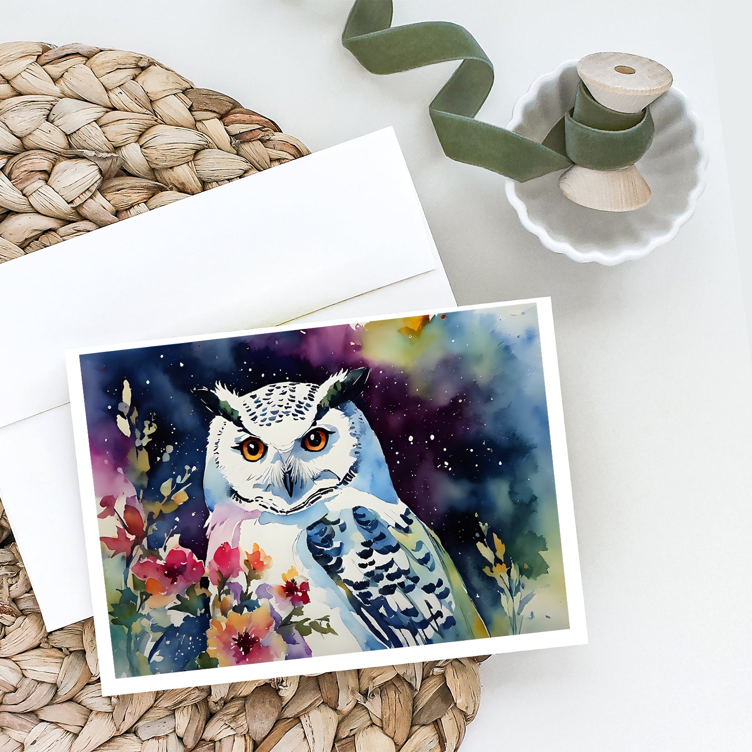 Greeting Cards Pack of 8 featuring breed specific Snowy Owl artwork. Celebrate special moments with Caroline's Treasures Printed Greeting Card Pack. This pack includes eight beautifully folded 5x7 cards, accompanied by eight matching white envelopes. With blank interiors, these cards provide ample space for your personalized messages and heartfelt holiday greetings. Each card features captivating full-color artwork, meticulously printed in our facility on high-quality 80 lb cover stock or 216 GSM. The super smooth finish of the white cards enhances the visual impact of the artwork, creating a truly stunning presentation. Designed by our talented in-house artists or licensed artists, the artwork on these cards showcases their creativity and attention to detail. From vibrant illustrations to captivating designs, each card tells its own unique story. Whether it's for birthdays, anniversaries, holidays, or any special occasion, Caroline's Treasures Greeting Card Pack is the perfect way to convey your heartfelt sentiments. Share joy, love, and warm wishes with these exquisite cards and make every moment unforgettable.