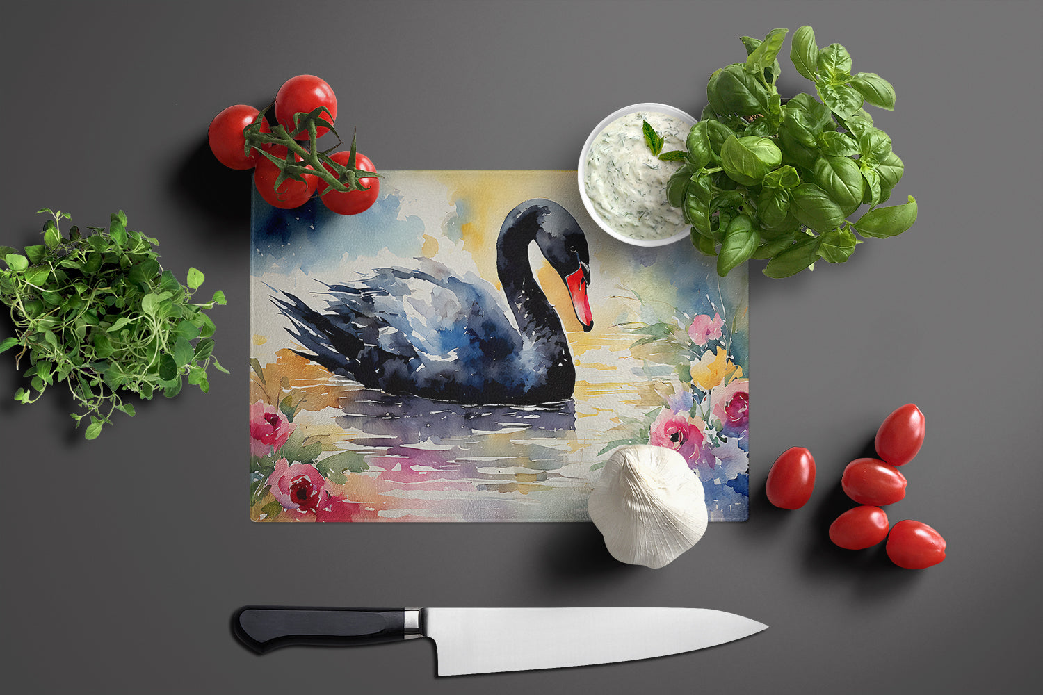 Glass Cutting Board featuring breed specific Black Swan artwork. Introduce your kitchen to the vibrant, large Decorative Glass Cutting Board from Caroline's Treasures. Crafted from resilient tempered glass, this board is not only a utilitarian necessity but also a colorful art piece. With its generous dimensions of 15 inches in height and 12 inches in length, it offers ample space for all your cutting needs. Every piece showcases captivating artwork from distinguished artists, bringing an aesthetic edge to your kitchen. Beyond its attractive design, this cutting board ensures your countertop stays pristine and unscathed, owing to its heat-resistant properties. Engineered with user convenience in mind, it features non-skid feet for stability, and rounded corners for additional safety. Its robust construction renders it virtually unbreakable, guaranteeing longevity. The board comes with protective feet bumpers, maintaining its position during use. This product is recommended to be hand washed only. Proudly printed and assembled in the United States, this cutting board exemplifies superior craftsmanship. With Caroline's Treasures' Decorative Glass Cutting Board, you're investing in a blend of functionality and artistic flair.