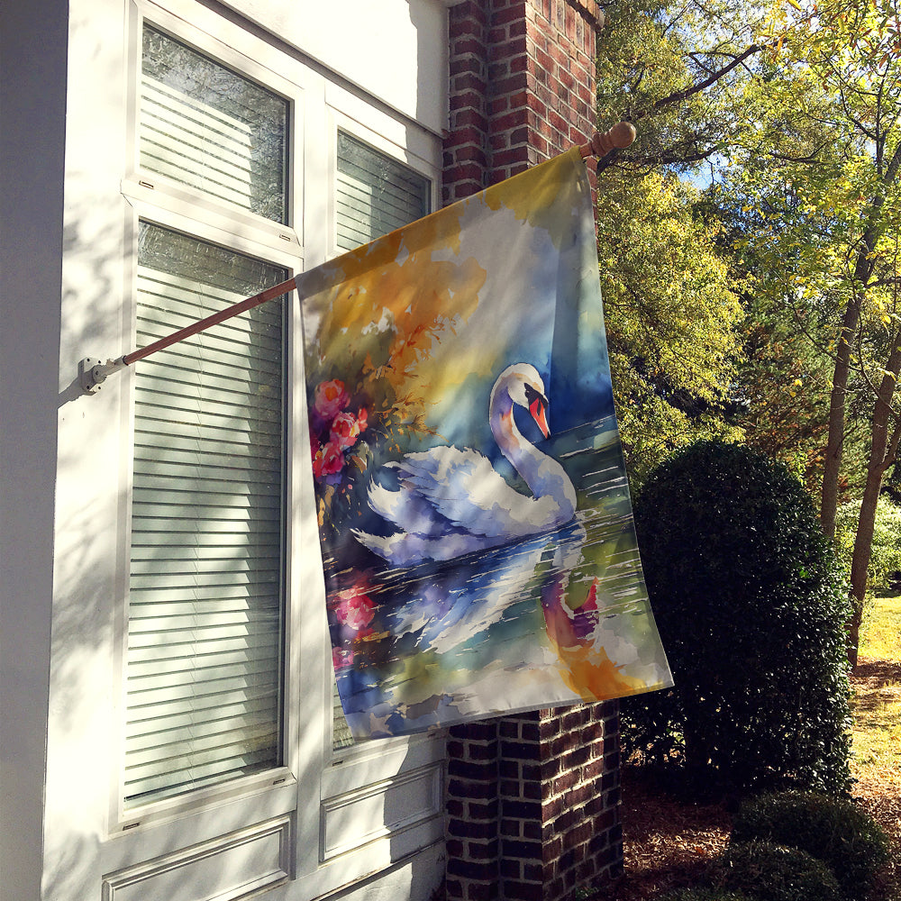 House Flag featuring breed specific Swan artwork. Presenting our Heavy Duty Polyester House Size Decorative Sleeve Pole Flag, a vibrant addition to enhance the aesthetic appeal of your home. This large decorative flag, measuring approximately 28 x 40 inches, offers ample coverage and visibility. Each flag is meticulously sewn and made individually, ensuring a unique piece that may slightly vary in size. It's a sleeve pole flag, designed to fit a standard decorative flag pole effortlessly. Please note that the flag pole and bracket are not included and should be purchased separately. What sets our flag apart is its dual-sided print. The design is mirrored on both sides of the fabric, allowing for uniform visibility regardless of the angle. Printed in full color, our flag showcases vibrant hues that truly stand out. To ensure lasting vibrancy and durability, the dyes are heat-set into the fabric. This ensures your flag remains bright and captivating through various weather conditions. Elevate the look of your home with our Heavy Duty Polyester House Size Decorative Sleeve Pole Flag!