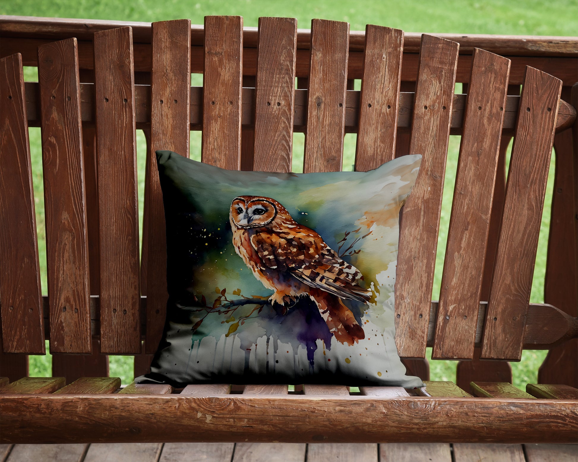 Throw Pillow featuring breed specific Tawny Owl artwork. Add a touch of vibrancy and comfort to your outdoor seating with Caroline's Treasures Fabric Decorative Pillow. Measuring approximately 14 inches by 14 inches, this outdoor pillow is crafted to elevate the appeal of your patio furniture, infusing it with vivid color and artistic flair. The pillow includes a 100% Polyester Fabric sham filled with a quality pillow form to provide superior comfort. Innovatively made from our brand new material, specifically woven for its water resistance, this pillow is designed for durability. The soft canvas fabric offers versatility in use, fit for your indoor couch or your outdoor patio, porch, or veranda. The fabric is dyed with colorfast dyes built for resilience against weather conditions, ensuring the pillow retains its beauty over time. Constructed by sewing three fabric pieces to create a sham, the polyester insert is then nestled inside to form the pillow, resulting in an overstuffed pillow that maintains its shape. Both the sham and the pillow insert are proudly made in the United States. As the pillows are handcrafted, there may be minor variations in size, further enhancing their unique charm. Experience comfort in style with Caroline's Treasures Fabric Decorative Pillow.