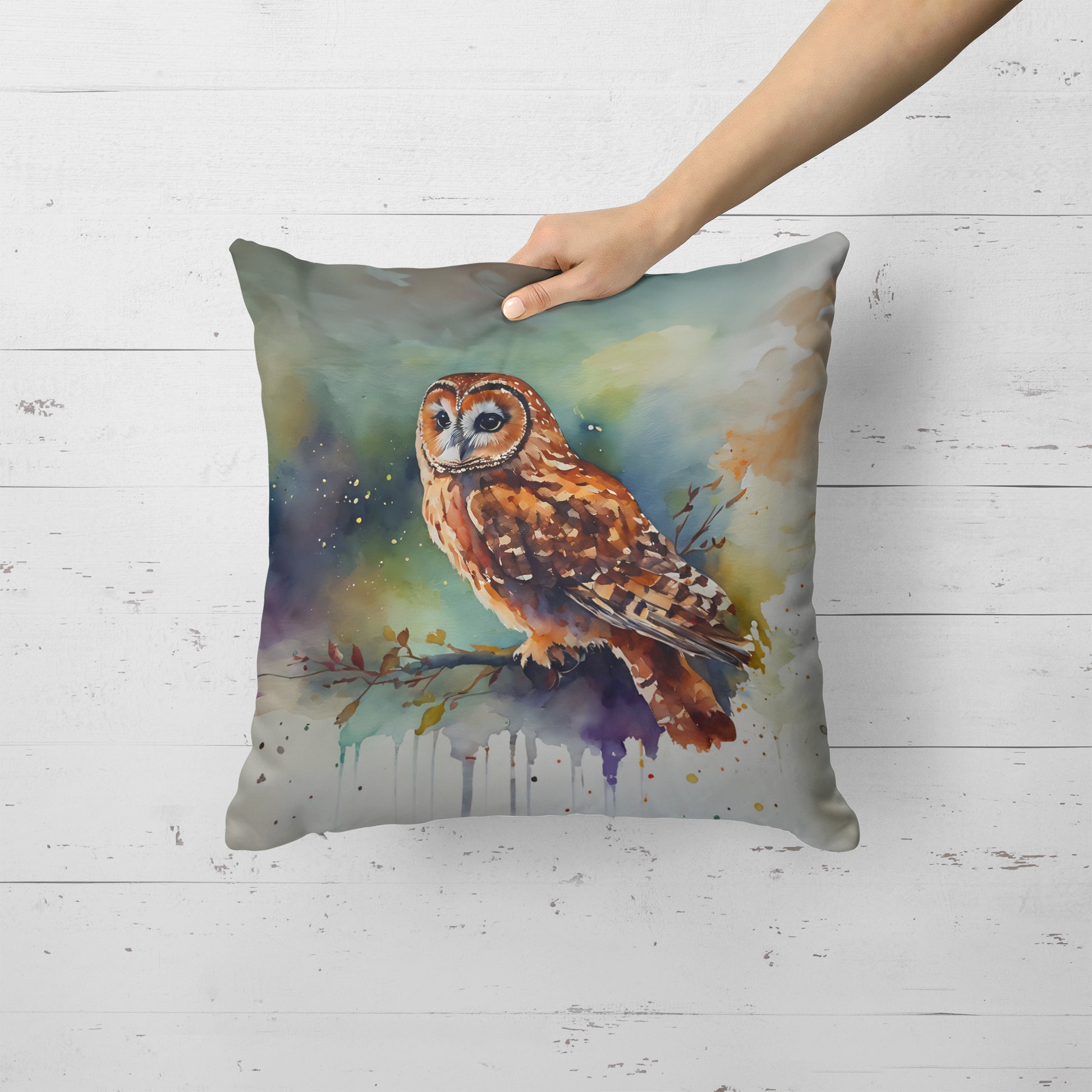 Throw Pillow featuring breed specific Tawny Owl artwork. Revitalize your outdoor or indoor living space with Caroline's Treasures 18x18 Fabric Decorative Pillow. With a generously sized dimension of approximately 18 inches by 18 inches, this pillow makes a comfortable and aesthetic addition to any seating area. Made from a unique, water-resistant material developed by Caroline's Treasures, the pillow sham is 100% polyester fabric that's durable and ready to weather any condition. Its vibrant, full-color artwork will not fade over time as it is dyed with color-fast dyes. Whether you place it on your patio furniture, porch, veranda, or indoor couch, its soft canvas fabric ensures a cozy experience. The pillow is handcrafted in the United States, featuring a sham created from three pieces of fabric and a polyester insert for enduring shape and overstuffed comfort. Despite being robustly built to endure the outdoors, it is as soft and snug as your favorite indoor cushions. Please note, as all our pillows are handmade, sizes may vary slightly, adding to the charm of this unique decorative item.