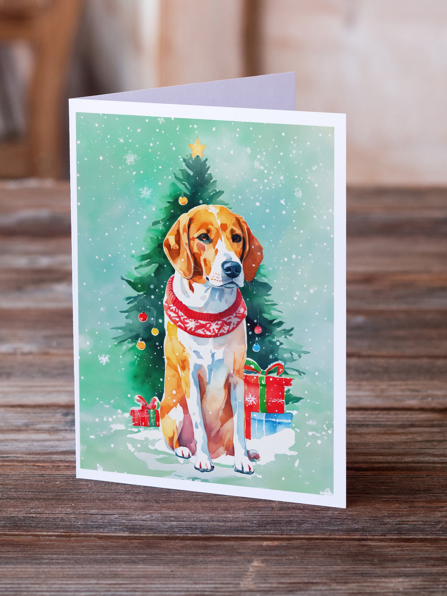 Greeting Cards Pack of 8 featuring breed specific English Foxhound artwork. Celebrate Christmas with this Christmas . Celebrate special moments with Caroline's Treasures Printed Greeting Card Pack. This pack includes eight beautifully folded 5x7 cards, accompanied by eight matching white envelopes. With blank interiors, these cards provide ample space for your personalized messages and heartfelt holiday greetings. Each card features captivating full-color artwork, meticulously printed in our facility on high-quality 80 lb cover stock or 216 GSM. The super smooth finish of the white cards enhances the visual impact of the artwork, creating a truly stunning presentation. Designed by our talented in-house artists or licensed artists, the artwork on these cards showcases their creativity and attention to detail. From vibrant illustrations to captivating designs, each card tells its own unique story. Whether it's for birthdays, anniversaries, holidays, or any special occasion, Caroline's Treasures Greeting Card Pack is the perfect way to convey your heartfelt sentiments. Share joy, love, and warm wishes with these exquisite cards and make every moment unforgettable.