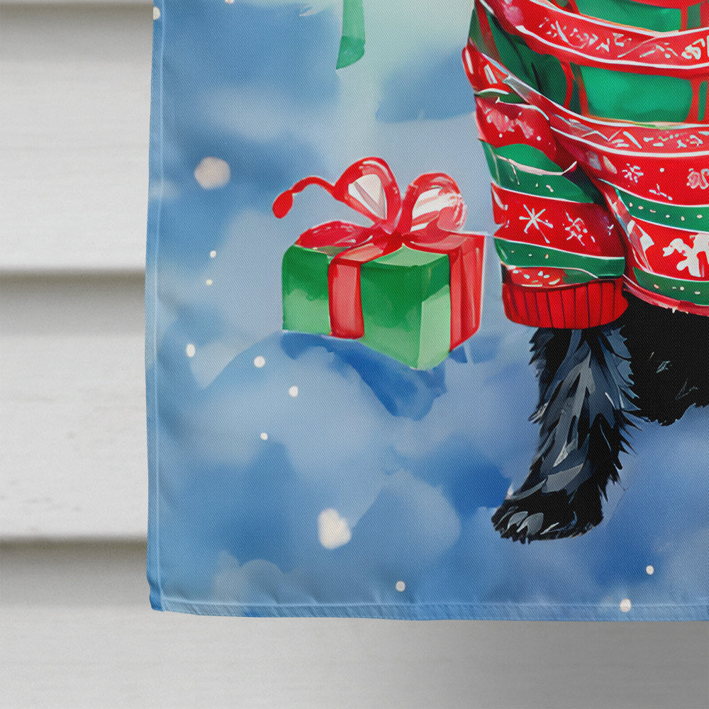 House Flag featuring breed specific Scottish Terrier Scottie artwork. Celebrate Christmas with this Christmas Large Flag. Presenting our Heavy Duty Polyester House Size Decorative Sleeve Pole Flag, a vibrant addition to enhance the aesthetic appeal of your home. This large decorative flag, measuring approximately 28 x 40 inches, offers ample coverage and visibility. Each flag is meticulously sewn and made individually, ensuring a unique piece that may slightly vary in size. It's a sleeve pole flag, designed to fit a standard decorative flag pole effortlessly. Please note that the flag pole and bracket are not included and should be purchased separately. What sets our flag apart is its dual-sided print. The design is mirrored on both sides of the fabric, allowing for uniform visibility regardless of the angle. Printed in full color, our flag showcases vibrant hues that truly stand out. To ensure lasting vibrancy and durability, the dyes are heat-set into the fabric. This ensures your flag remains bright and captivating through various weather conditions. Elevate the look of your home with our Heavy Duty Polyester House Size Decorative Sleeve Pole Flag!