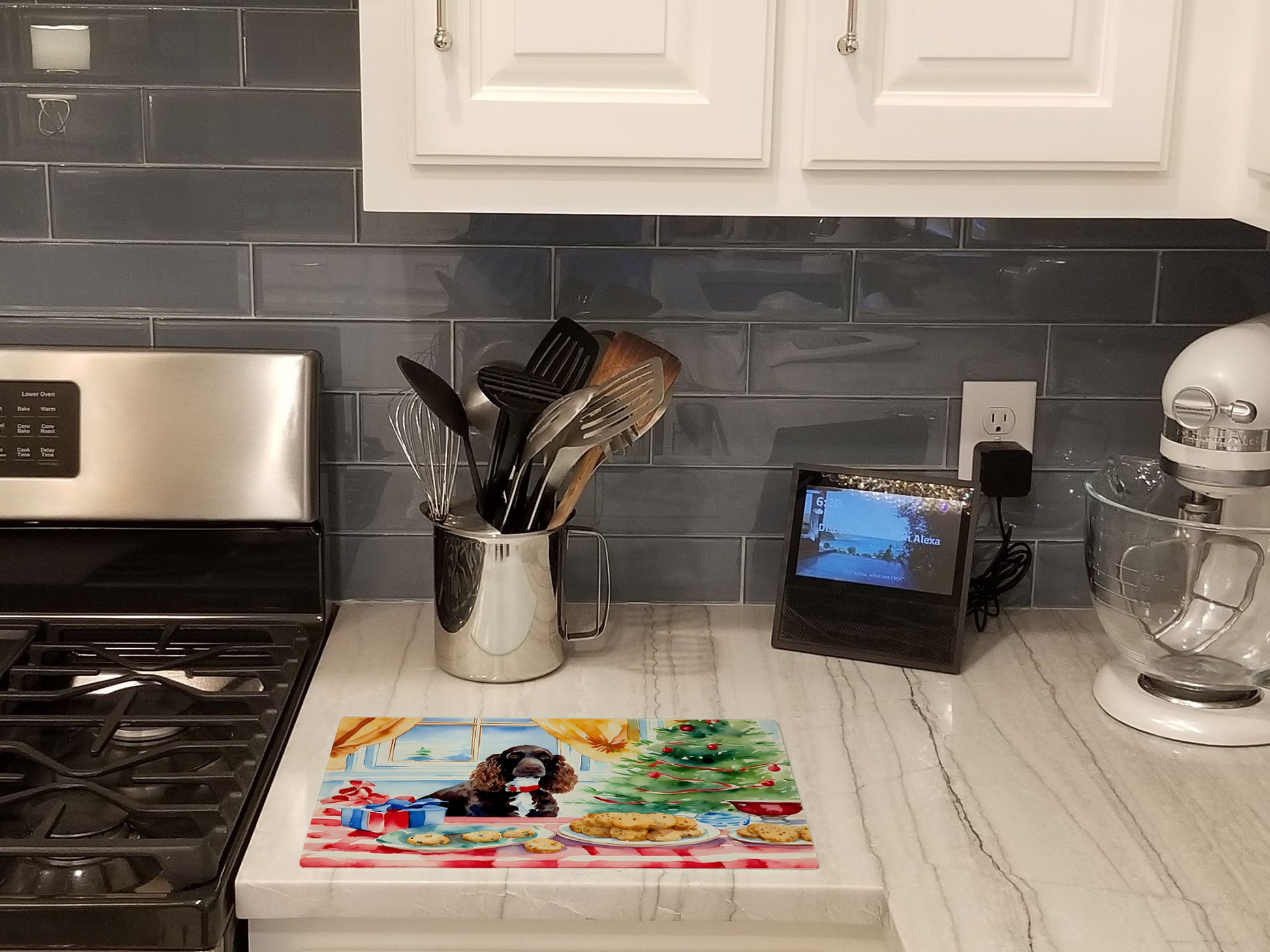 Glass Cutting Board featuring breed specific American Water Spaniel artwork. Celebrate Christmas with this Christmas Cutting Board. Introduce your kitchen to the vibrant, large Decorative Glass Cutting Board from Caroline's Treasures. Crafted from resilient tempered glass, this board is not only a utilitarian necessity but also a colorful art piece. With its generous dimensions of 15 inches in height and 12 inches in length, it offers ample space for all your cutting needs. Every piece showcases captivating artwork from distinguished artists, bringing an aesthetic edge to your kitchen. Beyond its attractive design, this cutting board ensures your countertop stays pristine and unscathed, owing to its heat-resistant properties. Engineered with user convenience in mind, it features non-skid feet for stability, and rounded corners for additional safety. Its robust construction renders it virtually unbreakable, guaranteeing longevity. The board comes with protective feet bumpers, maintaining its position during use. This product is recommended to be hand washed only. Proudly printed and assembled in the United States, this cutting board exemplifies superior craftsmanship. With Caroline's Treasures' Decorative Glass Cutting Board, you're investing in a blend of functionality and artistic flair.