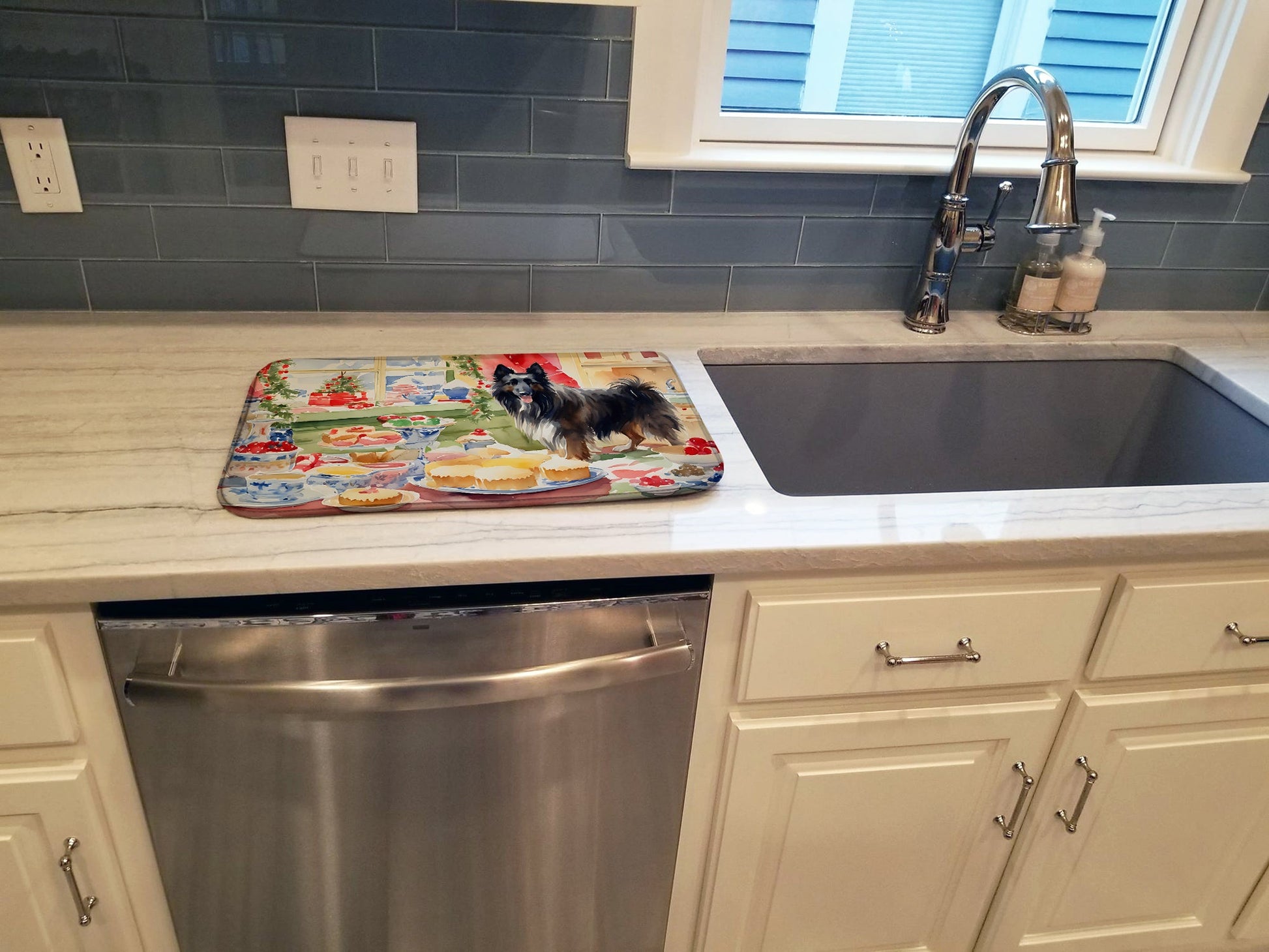 Belgian Sheepdog Christmas Cookies Dish Drying Mat