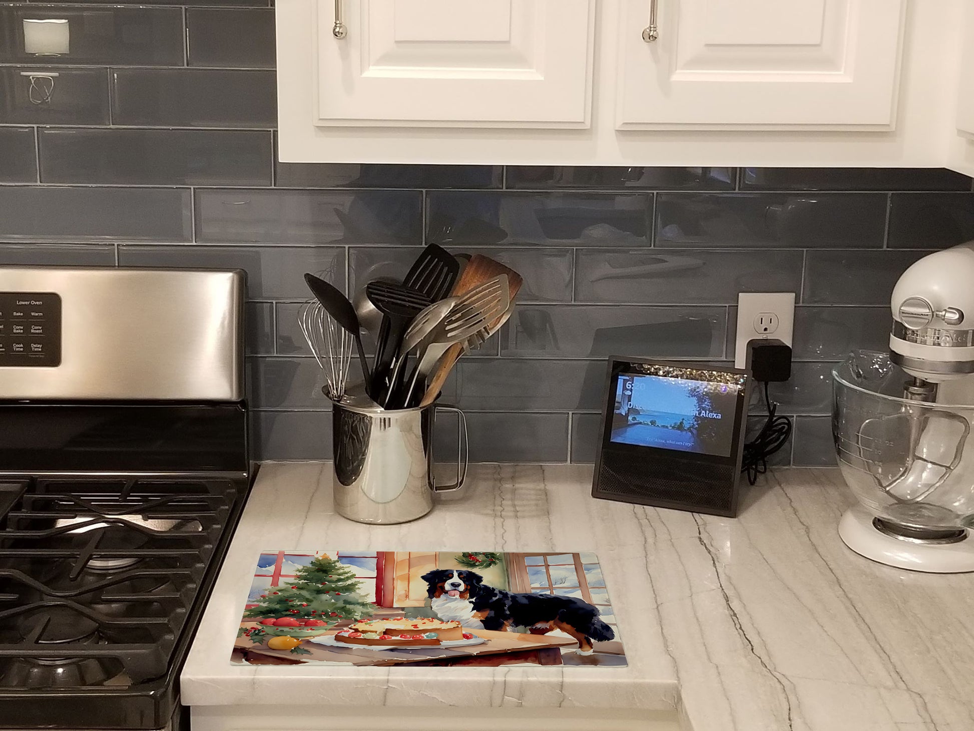 Glass Cutting Board featuring breed specific Bernese Mountain Dog artwork. Celebrate Christmas with this Christmas Cutting Board. Introduce your kitchen to the vibrant, large Decorative Glass Cutting Board from Caroline's Treasures. Crafted from resilient tempered glass, this board is not only a utilitarian necessity but also a colorful art piece. With its generous dimensions of 15 inches in height and 12 inches in length, it offers ample space for all your cutting needs. Every piece showcases captivating artwork from distinguished artists, bringing an aesthetic edge to your kitchen. Beyond its attractive design, this cutting board ensures your countertop stays pristine and unscathed, owing to its heat-resistant properties. Engineered with user convenience in mind, it features non-skid feet for stability, and rounded corners for additional safety. Its robust construction renders it virtually unbreakable, guaranteeing longevity. The board comes with protective feet bumpers, maintaining its position during use. This product is recommended to be hand washed only. Proudly printed and assembled in the United States, this cutting board exemplifies superior craftsmanship. With Caroline's Treasures' Decorative Glass Cutting Board, you're investing in a blend of functionality and artistic flair.