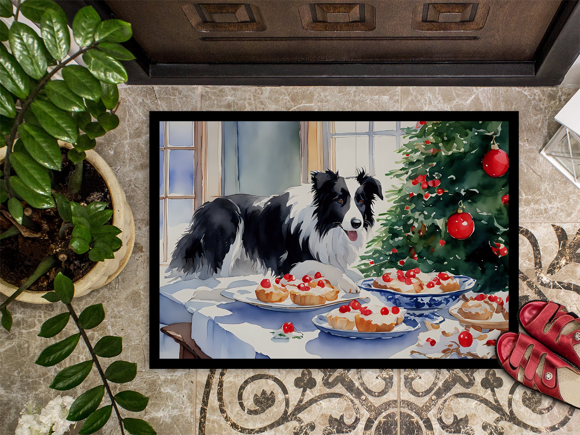 Border Collie Christmas Cookies Doormat