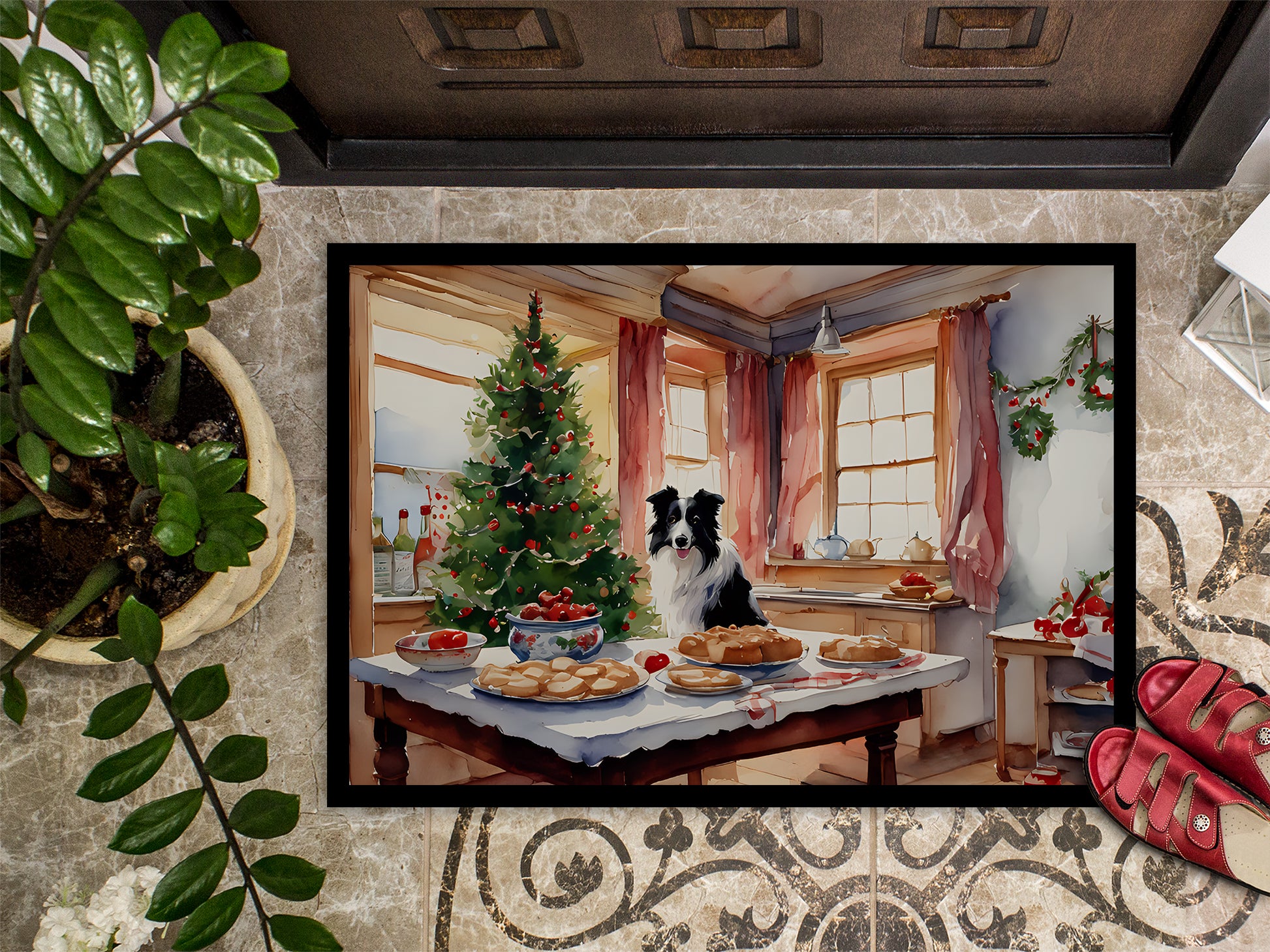 Border Collie Christmas Cookies Doormat