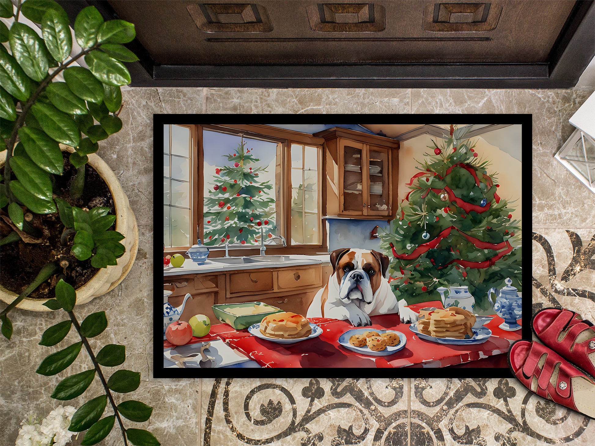 Doormat featuring breed specific Boxer artwork. Celebrate Christmas with this Christmas Doormat. Welcome your guests in style with our Artwork Door Mat, designed to withstand almost any weather condition. This mat, measuring approximately 24 by 36 inches, is held together by durable black binding tape. Its top layer, composed of polyester felt, is dyed with the eye-catching image you see on the mat. A few layers below provide the mat with stability, while its rubber bottom is stamped to help prevent slipping and ensures safety. Our mat works wonderfully as both an indoor or outdoor door mat. For cleaning, simply hose it off with water or use a power washer - no need for any cleaner that produces suds. Avoid scrubbing with a brush, instead, opt for the vacuum on floor setting. Designed manufactured and printed in the USA, this mat is a perfect addition to your porch, outdoor kitchen, entryway, or any indoor space. Its unique design makes it a charming decorative rug that greets your guests and adds a stylish touch to your home decor.