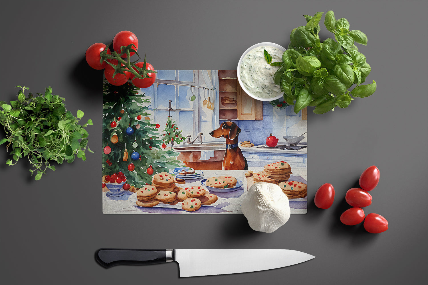 Glass Cutting Board featuring breed specific Dachshund artwork. Celebrate Christmas with this Christmas Cutting Board. Introduce your kitchen to the vibrant, large Decorative Glass Cutting Board from Caroline's Treasures. Crafted from resilient tempered glass, this board is not only a utilitarian necessity but also a colorful art piece. With its generous dimensions of 15 inches in height and 12 inches in length, it offers ample space for all your cutting needs. Every piece showcases captivating artwork from distinguished artists, bringing an aesthetic edge to your kitchen. Beyond its attractive design, this cutting board ensures your countertop stays pristine and unscathed, owing to its heat-resistant properties. Engineered with user convenience in mind, it features non-skid feet for stability, and rounded corners for additional safety. Its robust construction renders it virtually unbreakable, guaranteeing longevity. The board comes with protective feet bumpers, maintaining its position during use. This product is recommended to be hand washed only. Proudly printed and assembled in the United States, this cutting board exemplifies superior craftsmanship. With Caroline's Treasures' Decorative Glass Cutting Board, you're investing in a blend of functionality and artistic flair.