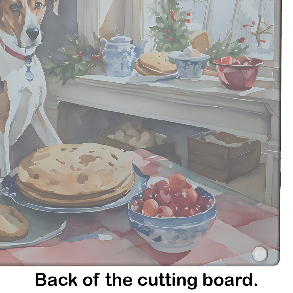 Glass Cutting Board featuring breed specific English Foxhound artwork. Celebrate Christmas with this Christmas Cutting Board. Introduce your kitchen to the vibrant, large Decorative Glass Cutting Board from Caroline's Treasures. Crafted from resilient tempered glass, this board is not only a utilitarian necessity but also a colorful art piece. With its generous dimensions of 15 inches in height and 12 inches in length, it offers ample space for all your cutting needs. Every piece showcases captivating artwork from distinguished artists, bringing an aesthetic edge to your kitchen. Beyond its attractive design, this cutting board ensures your countertop stays pristine and unscathed, owing to its heat-resistant properties. Engineered with user convenience in mind, it features non-skid feet for stability, and rounded corners for additional safety. Its robust construction renders it virtually unbreakable, guaranteeing longevity. The board comes with protective feet bumpers, maintaining its position during use. This product is recommended to be hand washed only. Proudly printed and assembled in the United States, this cutting board exemplifies superior craftsmanship. With Caroline's Treasures' Decorative Glass Cutting Board, you're investing in a blend of functionality and artistic flair.