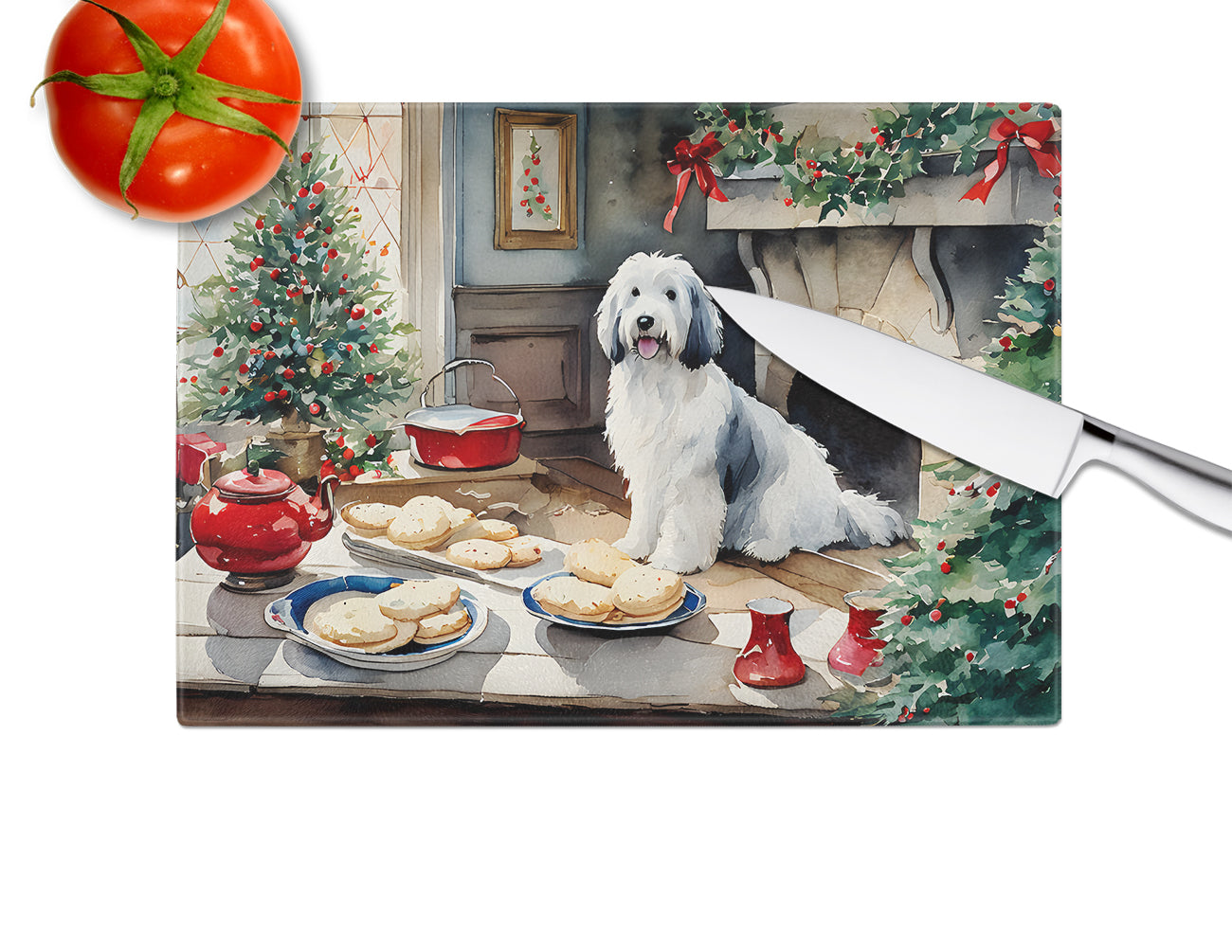 Old English Sheepdog Christmas Cookies Glass Cutting Board