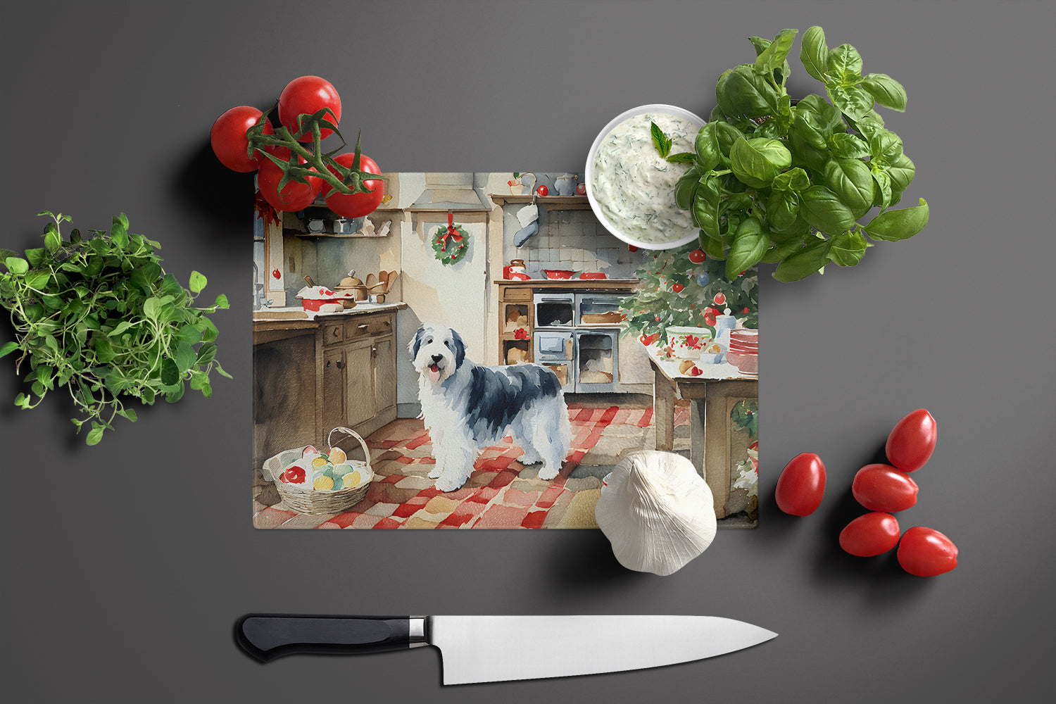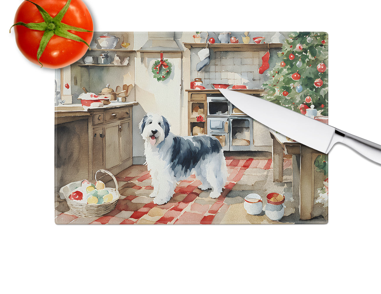 Glass Cutting Board featuring breed specific Old English Sheepdog artwork. Celebrate Christmas with this Christmas Cutting Board. Introduce your kitchen to the vibrant, large Decorative Glass Cutting Board from Caroline's Treasures. Crafted from resilient tempered glass, this board is not only a utilitarian necessity but also a colorful art piece. With its generous dimensions of 15 inches in height and 12 inches in length, it offers ample space for all your cutting needs. Every piece showcases captivating artwork from distinguished artists, bringing an aesthetic edge to your kitchen. Beyond its attractive design, this cutting board ensures your countertop stays pristine and unscathed, owing to its heat-resistant properties. Engineered with user convenience in mind, it features non-skid feet for stability, and rounded corners for additional safety. Its robust construction renders it virtually unbreakable, guaranteeing longevity. The board comes with protective feet bumpers, maintaining its position during use. This product is recommended to be hand washed only. Proudly printed and assembled in the United States, this cutting board exemplifies superior craftsmanship. With Caroline's Treasures' Decorative Glass Cutting Board, you're investing in a blend of functionality and artistic flair.