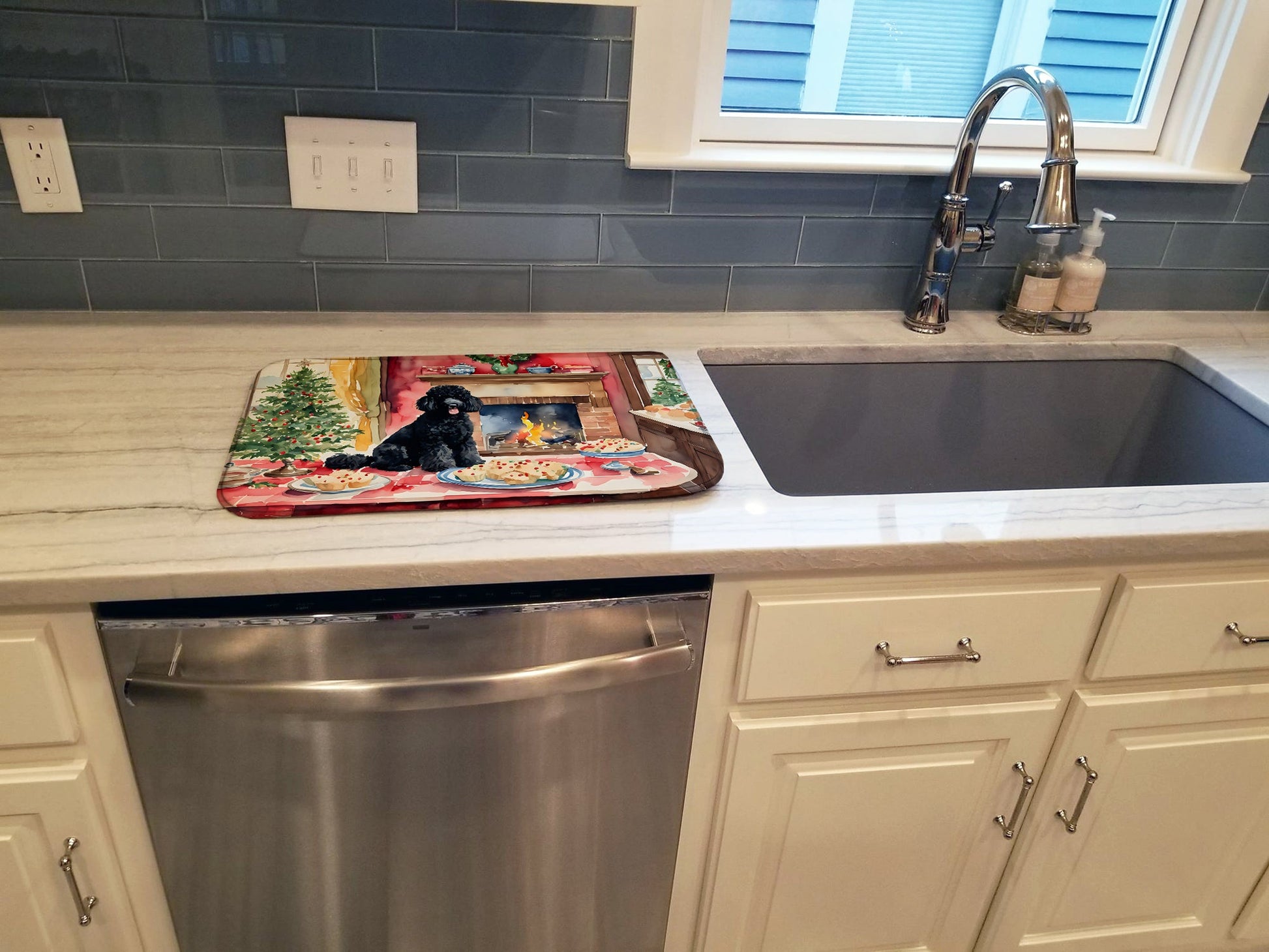 Dish Drying Mat featuring breed specific Poodle artwork. Celebrate Christmas with this Christmas Dish Drying Mat. Say goodbye to messy countertops and soggy dish towels with our innovative dish drying mat. Our high-quality dish drying pad is designed to keep your countertops dry while offering a stylish and efficient solution. Whether you're air drying dishes, glasses, stemware, silverware, pots, pans, bottles, or even fruits and vegetables, our dish mat is the perfect choice. The 14 inches x 22 inches size fits most counters and dish drying racks, and the non-slip design ensures stability. Made with water-absorbent polyester and a polyurethane foam insert, our dish drying mat is not only functional but also durable. It's machine washable and printed in the USA for long-lasting use. The beautiful artwork adds flair to your kitchen decor, making it a perfect housewarming gift or present for any occasion. Upgrade your kitchen experience with our absorbent and versatile dish drying mat.
