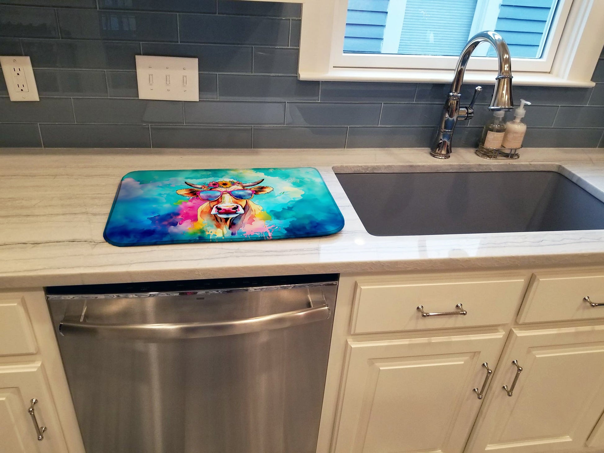 Hippie Animal Malvi Cow Dish Drying Mat