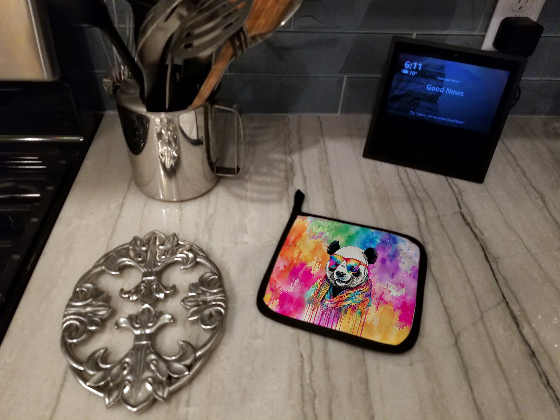 Hippie Animal Panda Pair of Pot Holders
