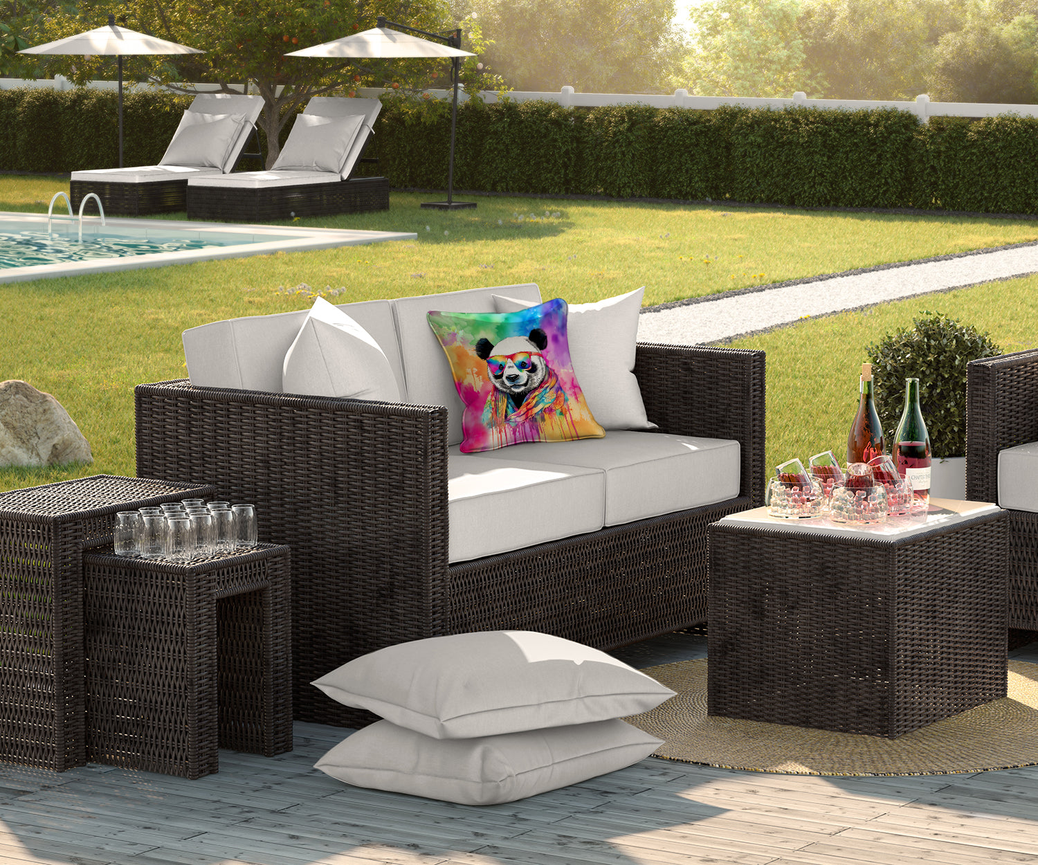 Throw Pillow featuring breed specific Panda artwork. Revitalize your outdoor or indoor living space with Caroline's Treasures 18x18 Fabric Decorative Pillow. With a generously sized dimension of approximately 18 inches by 18 inches, this pillow makes a comfortable and aesthetic addition to any seating area. Made from a unique, water-resistant material developed by Caroline's Treasures, the pillow sham is 100% polyester fabric that's durable and ready to weather any condition. Its vibrant, full-color artwork will not fade over time as it is dyed with color-fast dyes. Whether you place it on your patio furniture, porch, veranda, or indoor couch, its soft canvas fabric ensures a cozy experience. The pillow is handcrafted in the United States, featuring a sham created from three pieces of fabric and a polyester insert for enduring shape and overstuffed comfort. Despite being robustly built to endure the outdoors, it is as soft and snug as your favorite indoor cushions. Please note, as all our pillows are handmade, sizes may vary slightly, adding to the charm of this unique decorative item.