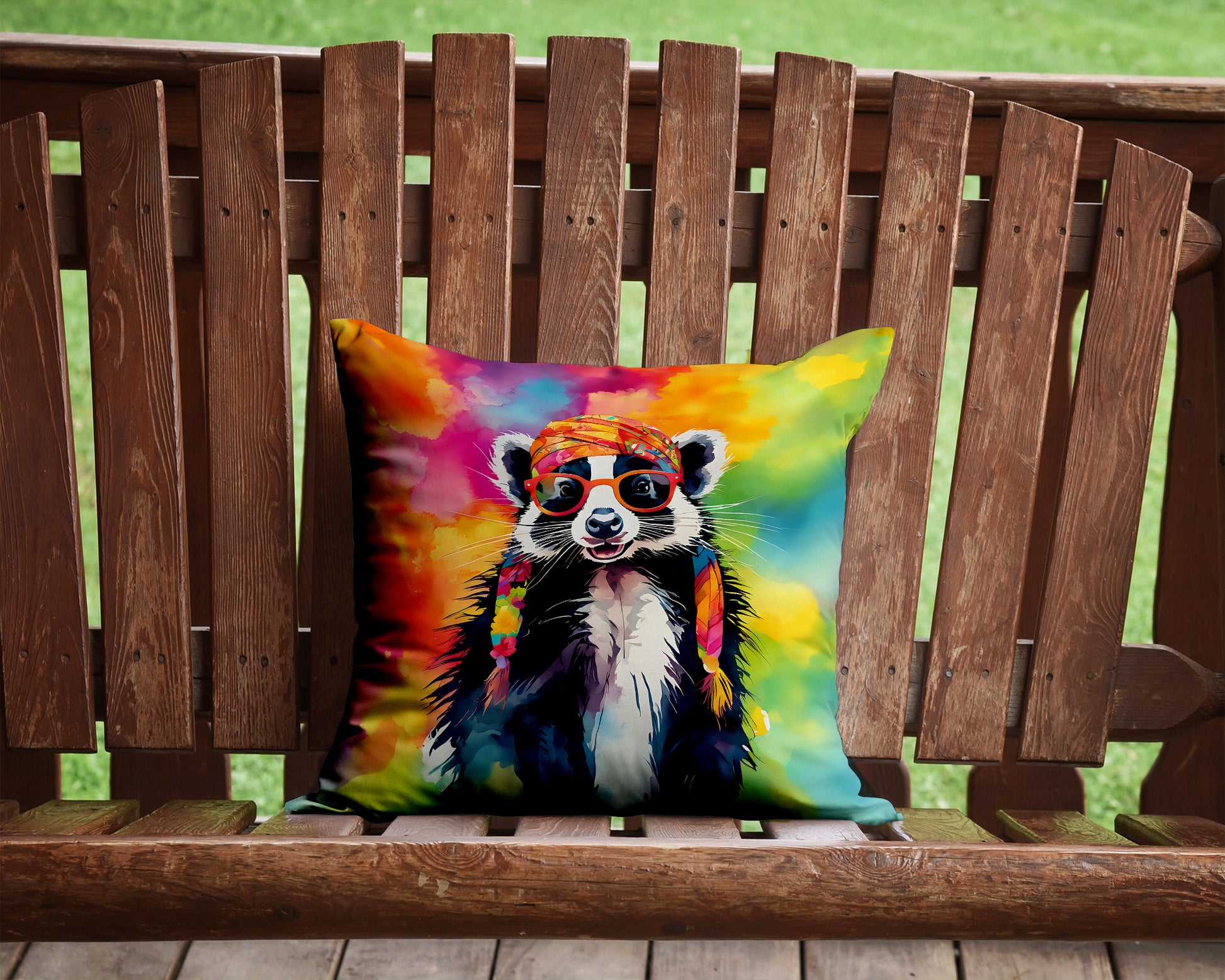 Throw Pillow featuring breed specific Skunk artwork. Add a touch of vibrancy and comfort to your outdoor seating with Caroline's Treasures Fabric Decorative Pillow. Measuring approximately 14 inches by 14 inches, this outdoor pillow is crafted to elevate the appeal of your patio furniture, infusing it with vivid color and artistic flair. The pillow includes a 100% Polyester Fabric sham filled with a quality pillow form to provide superior comfort. Innovatively made from our brand new material, specifically woven for its water resistance, this pillow is designed for durability. The soft canvas fabric offers versatility in use, fit for your indoor couch or your outdoor patio, porch, or veranda. The fabric is dyed with colorfast dyes built for resilience against weather conditions, ensuring the pillow retains its beauty over time. Constructed by sewing three fabric pieces to create a sham, the polyester insert is then nestled inside to form the pillow, resulting in an overstuffed pillow that maintains its shape. Both the sham and the pillow insert are proudly made in the United States. As the pillows are handcrafted, there may be minor variations in size, further enhancing their unique charm. Experience comfort in style with Caroline's Treasures Fabric Decorative Pillow.