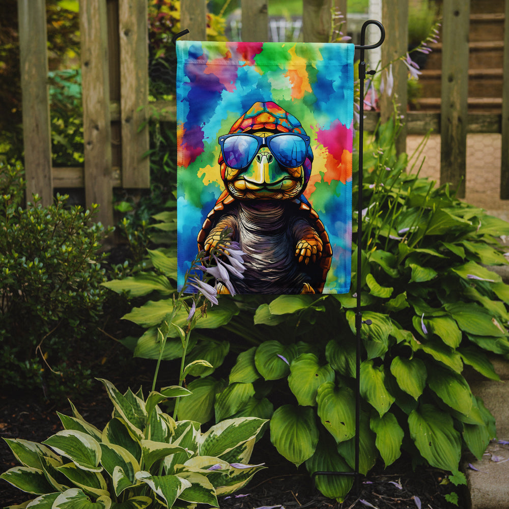 Garden Flag featuring breed specific Tortoise Turtle artwork. Enhance the beauty of your garden, patio, or yard with Caroline's Treasures Decorative Garden Flag, proudly made in the USA. Crafted from two pieces of thick, double-sided polyester fabric, this 2-ply garden flag is designed to withstand various weather conditions, making it water-resistant and weatherproof. Featuring correctly readable words on both sides, this garden flag offers a delightful visual experience from any angle. With its heavier weight, it stands out among other garden flags, ensuring stability and durability even in wind, rain, and snow. Measuring approximately 11 1/4 inches by 15 1/2 inches, this flag allows you to personalize your outdoor decor. It comes with a 1 1/2-inch sleeve sewn in, allowing easy attachment to any standard garden flag stand or garden size porch hanger (sold separately). Make a statement in your outdoor space with Caroline's Treasures Decorative Garden Flag, a vibrant and high-quality flag that adds color and personality to your surroundings. Proudly made in the USA, it's a symbol of quality craftsmanship and attention to detail.