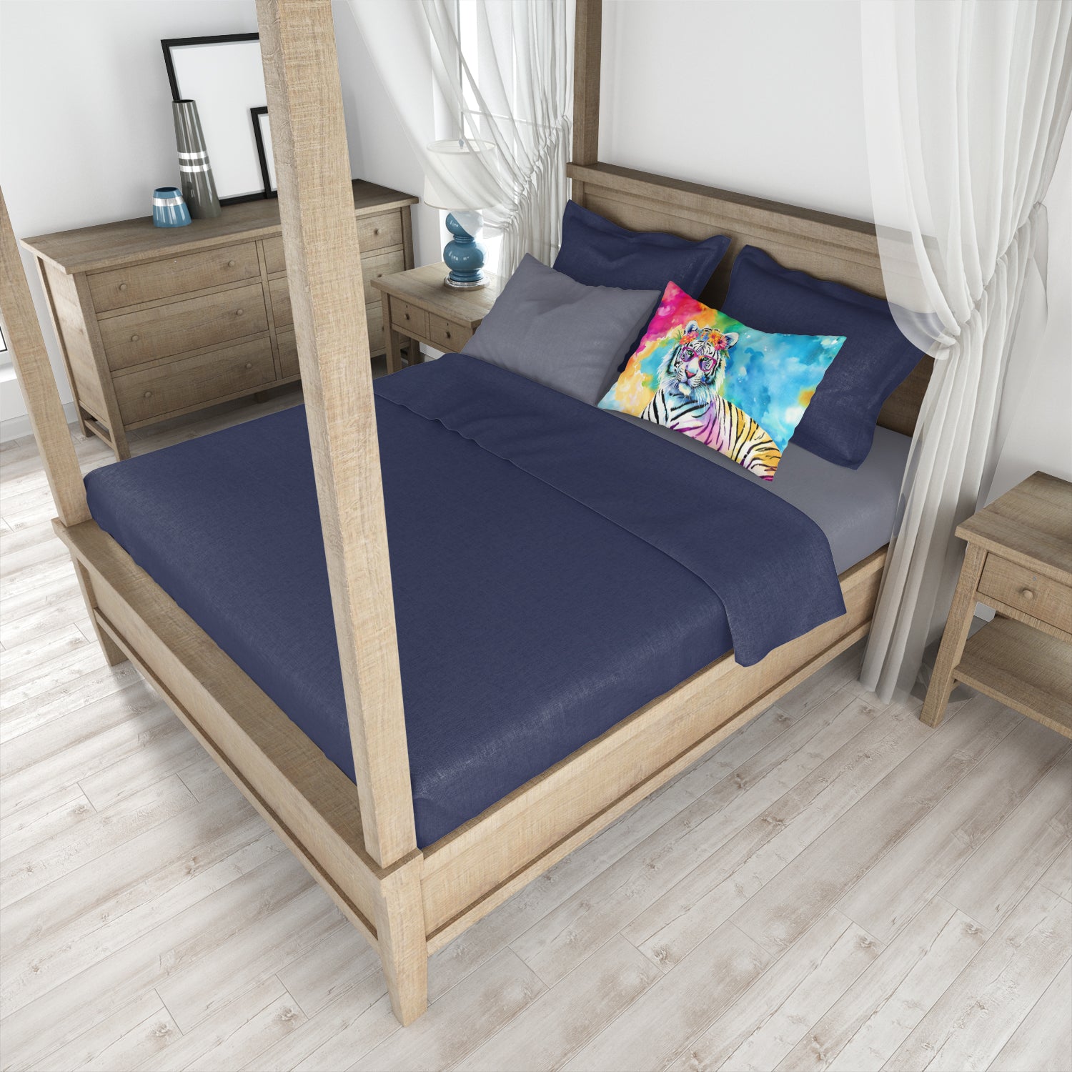 Standard Pillowcase featuring breed specific White Tiger artwork. Experience an upgrade in your sleeping comfort with our Fabric Standard Pillowcase, designed to balance style, comfort, and practicality. Showcasing vibrant artwork on the front and a standard white on the back, this pillowcase is more than a functional item�it's an expression of your personal style. Crafted from premium moisture-wicking material, our pillowcase ensures a pleasant sleeping experience. The breathable performance fabric allows for excellent air circulation, keeping you cool and comfortable throughout the night while also demonstrating exceptional quality. This pillowcase, measuring 30 x 20.5 inches with a slender 0.15 inch thickness, and weighing only 0.25 lbs, fits a standard pillow perfectly. Maintaining our pillowcase is hassle-free. It requires no ironing�simply wash in cold water and dry at medium heat. Bring art and luxury into your bedroom with our Fabric Standard Pillowcase. Its unique design and top-tier fabric contribute to a relaxing and rejuvenating sleep experience. Brighten your bedroom decor while enhancing your sleep with our high-performance pillowcase.