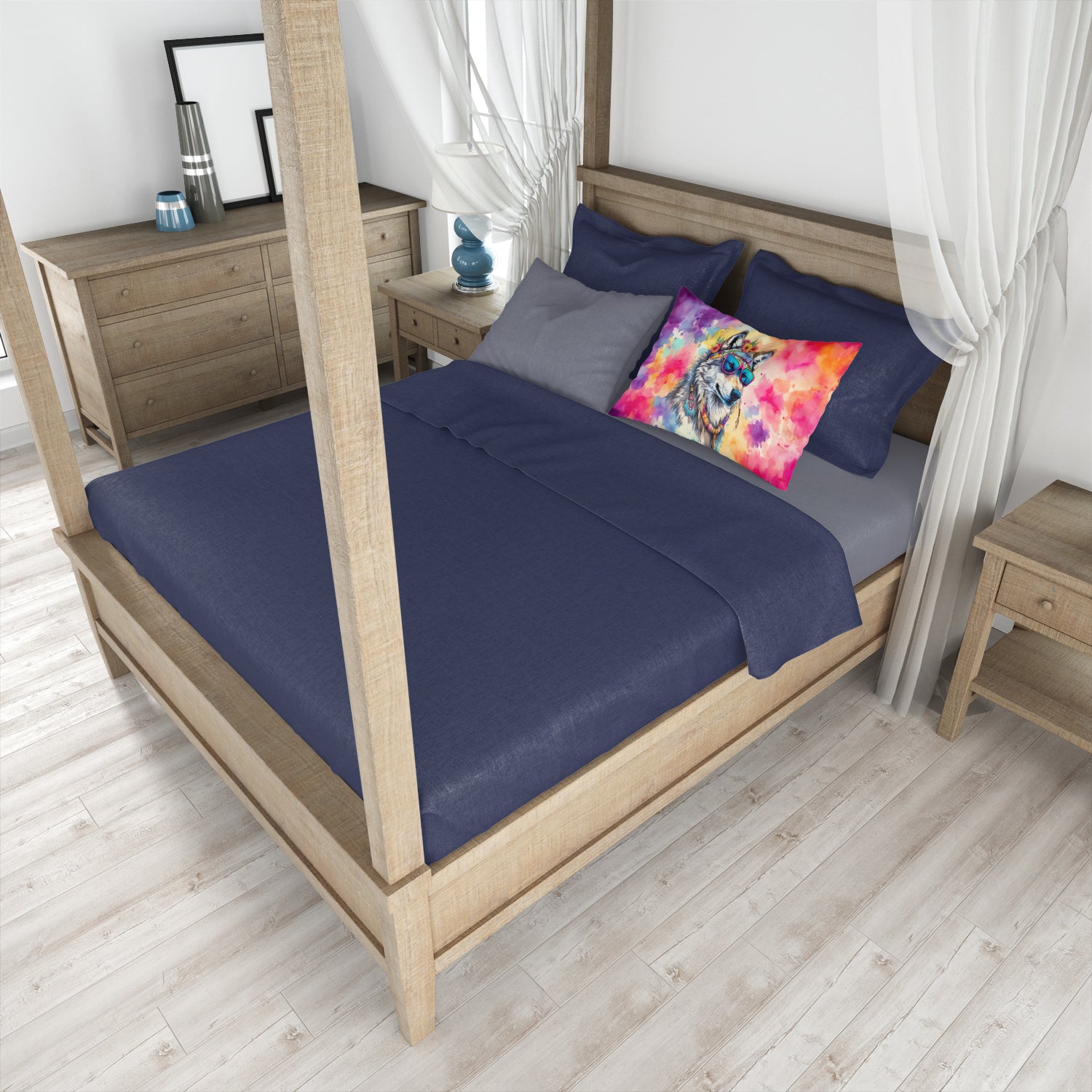 Standard Pillowcase featuring breed specific Wolf artwork. Experience an upgrade in your sleeping comfort with our Fabric Standard Pillowcase, designed to balance style, comfort, and practicality. Showcasing vibrant artwork on the front and a standard white on the back, this pillowcase is more than a functional item�it's an expression of your personal style. Crafted from premium moisture-wicking material, our pillowcase ensures a pleasant sleeping experience. The breathable performance fabric allows for excellent air circulation, keeping you cool and comfortable throughout the night while also demonstrating exceptional quality. This pillowcase, measuring 30 x 20.5 inches with a slender 0.15 inch thickness, and weighing only 0.25 lbs, fits a standard pillow perfectly. Maintaining our pillowcase is hassle-free. It requires no ironing�simply wash in cold water and dry at medium heat. Bring art and luxury into your bedroom with our Fabric Standard Pillowcase. Its unique design and top-tier fabric contribute to a relaxing and rejuvenating sleep experience. Brighten your bedroom decor while enhancing your sleep with our high-performance pillowcase.