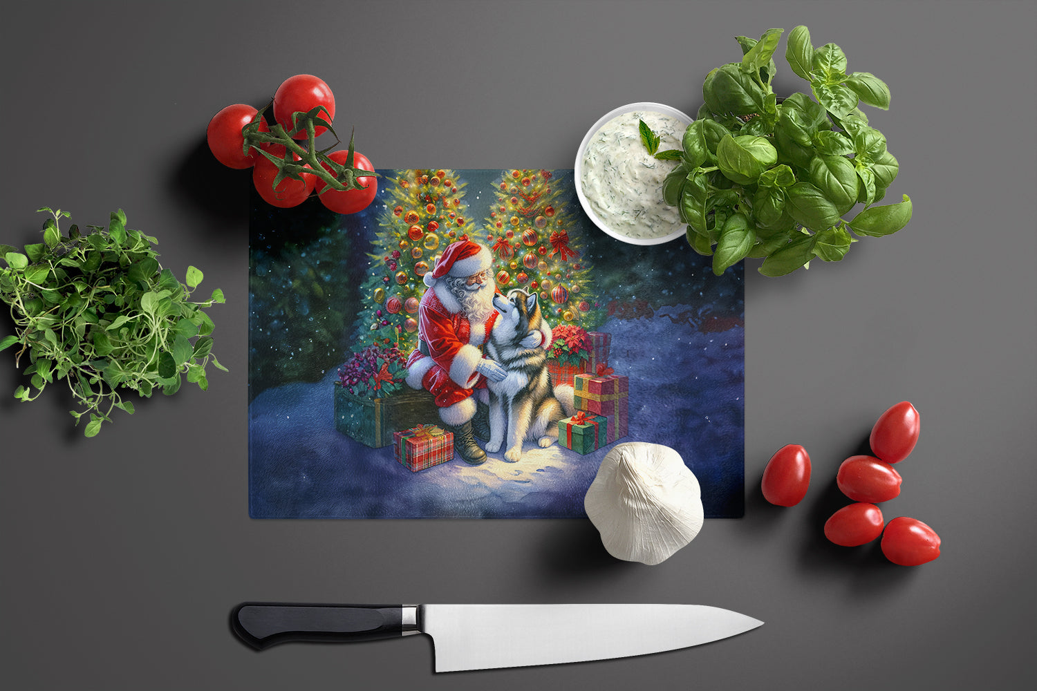Alaskan Malamute and Santa Claus Glass Cutting Board