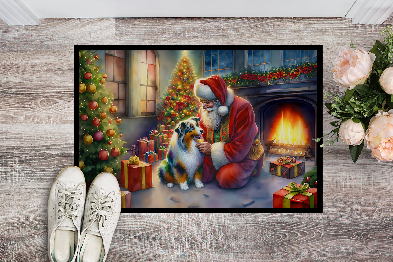 Australian Shepherd and Santa Claus Doormat