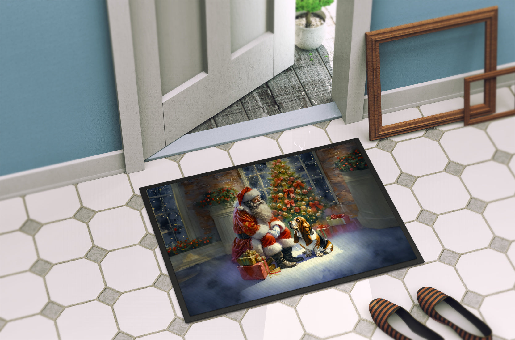 Basset Hound and Santa Claus Doormat