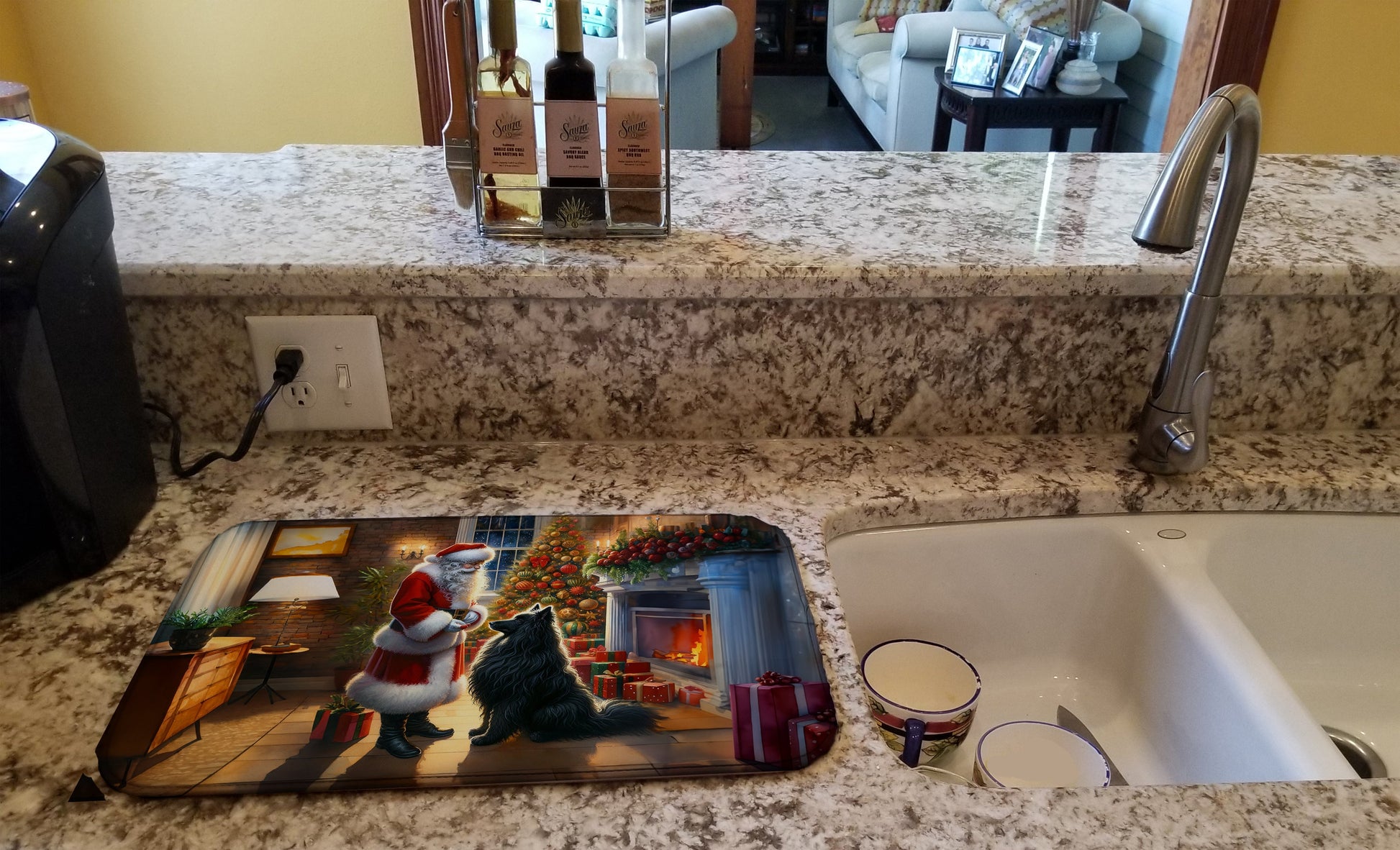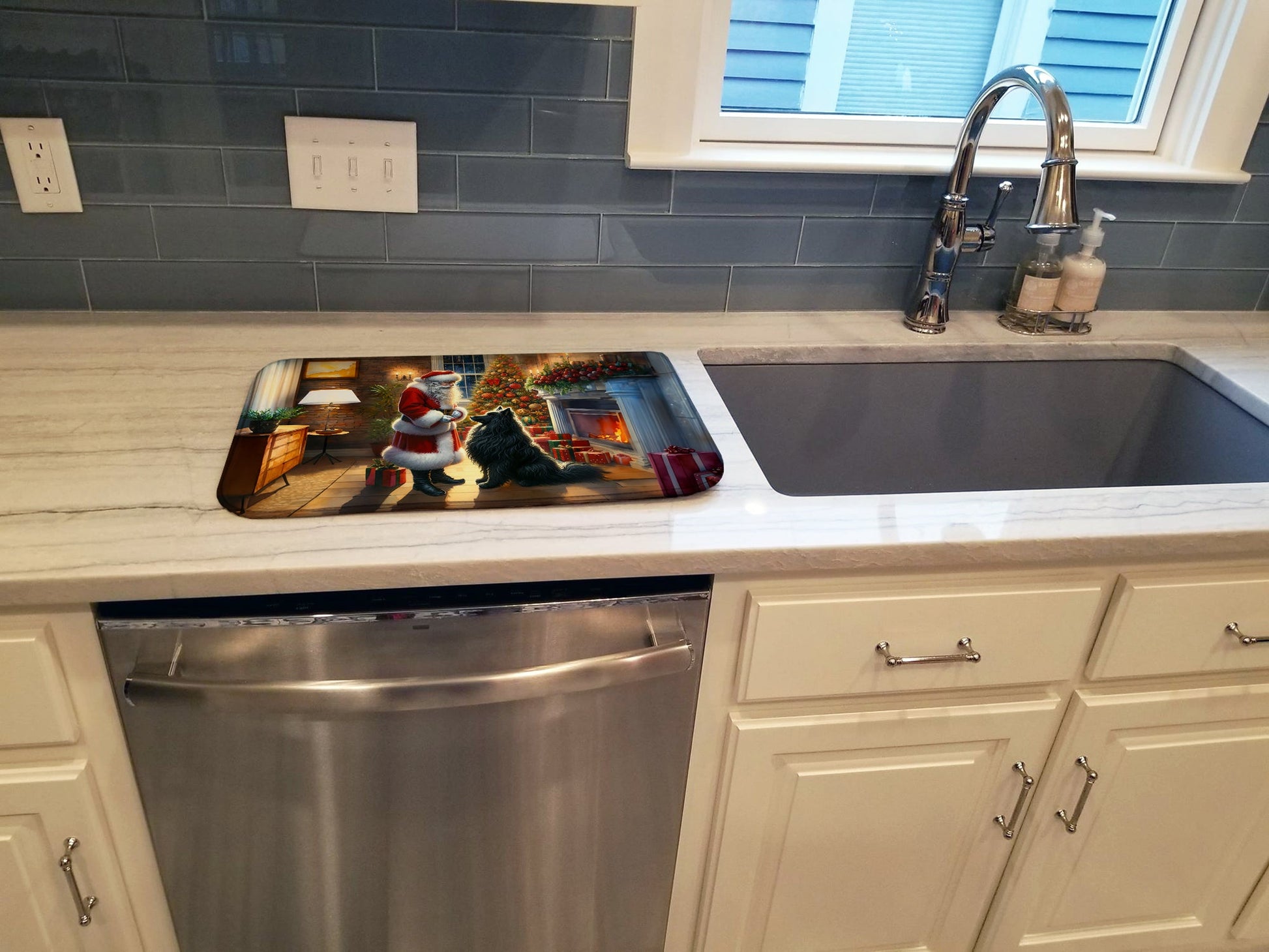Belgian Sheepdog and Santa Claus Dish Drying Mat