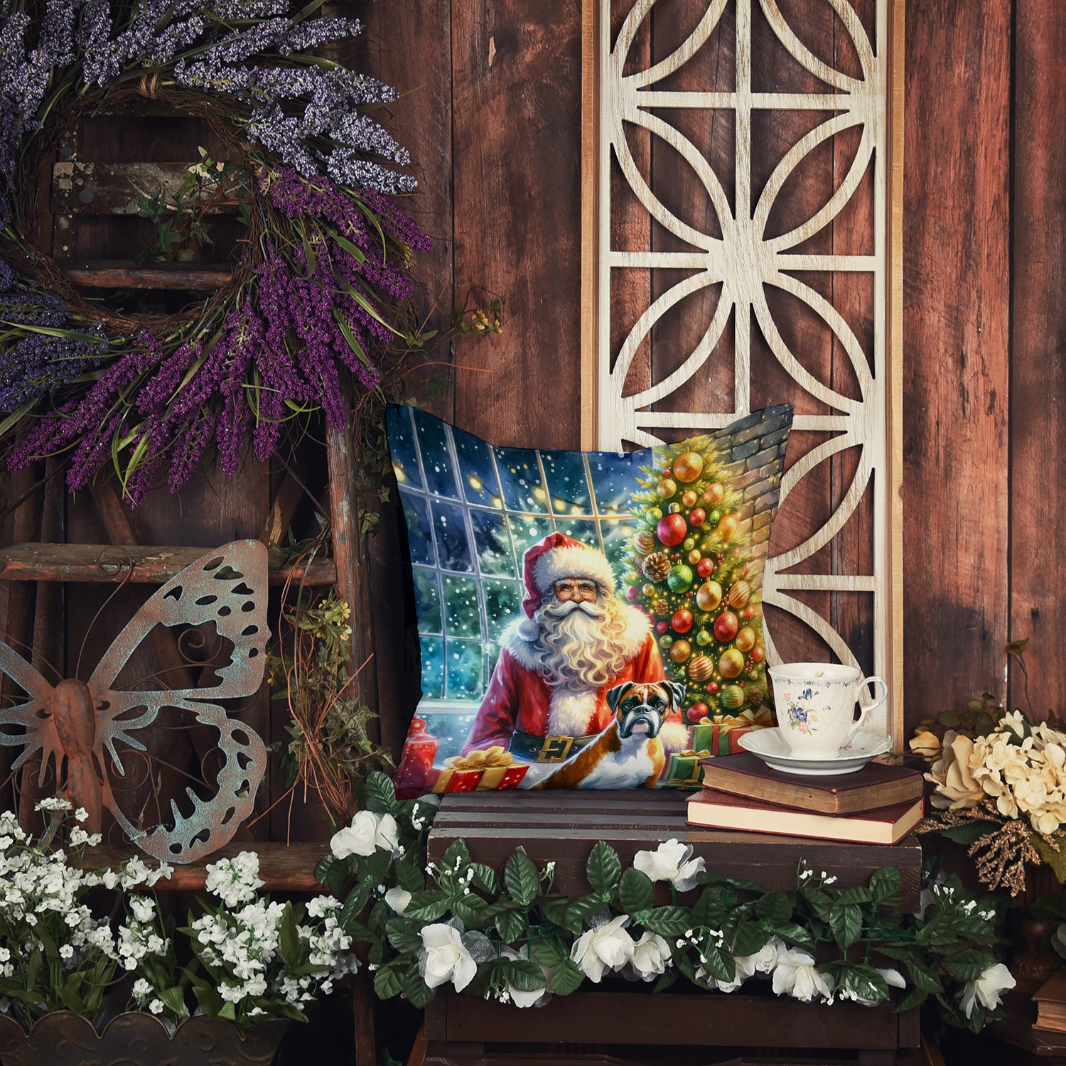 Throw Pillow featuring breed specific Boxer artwork. Celebrate Christmas with this Christmas Pillow. Revitalize your outdoor or indoor living space with Caroline's Treasures 18x18 Fabric Decorative Pillow. With a generously sized dimension of approximately 18 inches by 18 inches, this pillow makes a comfortable and aesthetic addition to any seating area. Made from a unique, water-resistant material developed by Caroline's Treasures, the pillow sham is 100% polyester fabric that's durable and ready to weather any condition. Its vibrant, full-color artwork will not fade over time as it is dyed with color-fast dyes. Whether you place it on your patio furniture, porch, veranda, or indoor couch, its soft canvas fabric ensures a cozy experience. The pillow is handcrafted in the United States, featuring a sham created from three pieces of fabric and a polyester insert for enduring shape and overstuffed comfort. Despite being robustly built to endure the outdoors, it is as soft and snug as your favorite indoor cushions. Please note, as all our pillows are handmade, sizes may vary slightly, adding to the charm of this unique decorative item.
