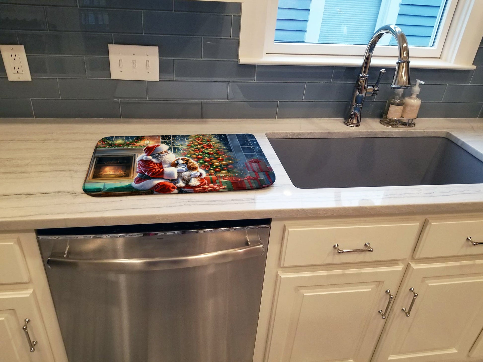Cavalier Spaniel and Santa Claus Dish Drying Mat