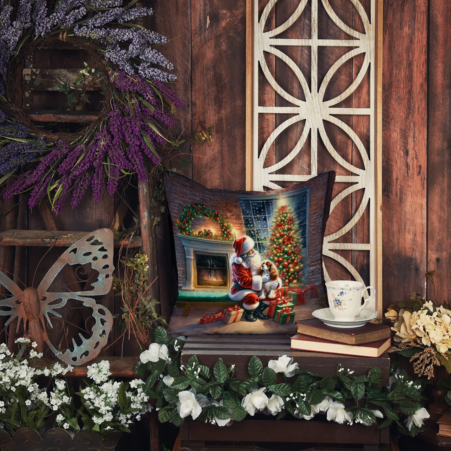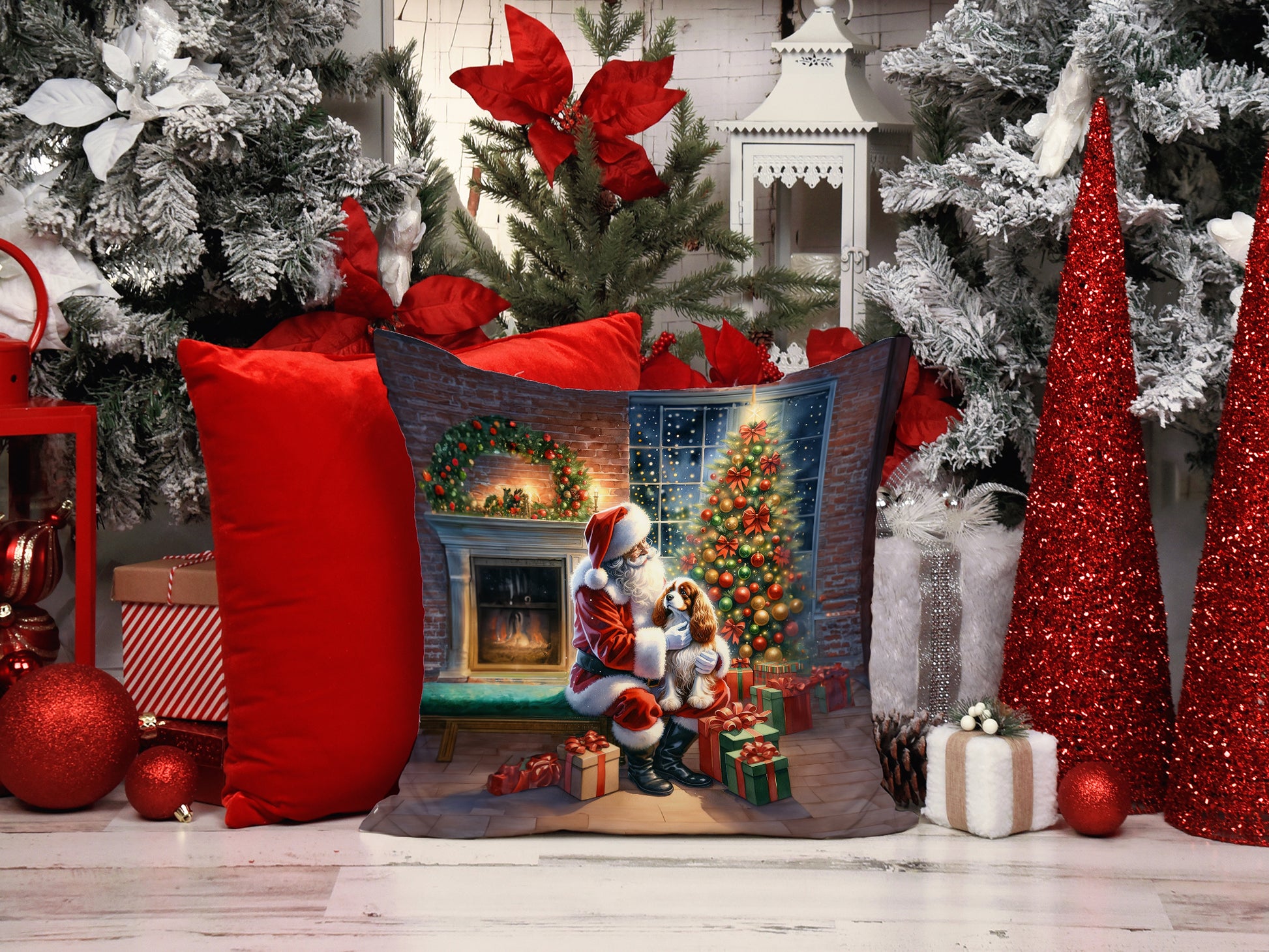 Cavalier Spaniel and Santa Claus Throw Pillow