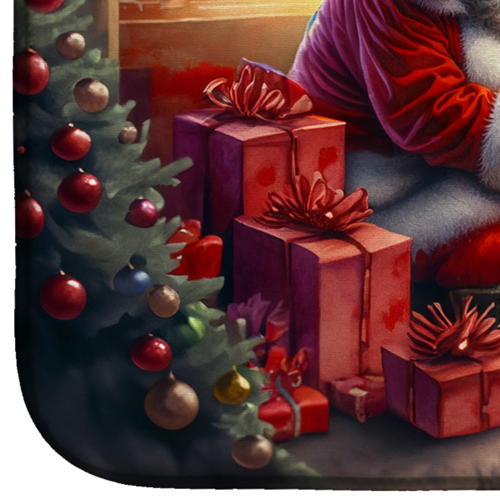 Dish Drying Mat featuring breed specific German Shepherd artwork. Celebrate Christmas with this Christmas Dish Drying Mat. Say goodbye to messy countertops and soggy dish towels with our innovative dish drying mat. Our high-quality dish drying pad is designed to keep your countertops dry while offering a stylish and efficient solution. Whether you're air drying dishes, glasses, stemware, silverware, pots, pans, bottles, or even fruits and vegetables, our dish mat is the perfect choice. The 14 inches x 22 inches size fits most counters and dish drying racks, and the non-slip design ensures stability. Made with water-absorbent polyester and a polyurethane foam insert, our dish drying mat is not only functional but also durable. It's machine washable and printed in the USA for long-lasting use. The beautiful artwork adds flair to your kitchen decor, making it a perfect housewarming gift or present for any occasion. Upgrade your kitchen experience with our absorbent and versatile dish drying mat.
