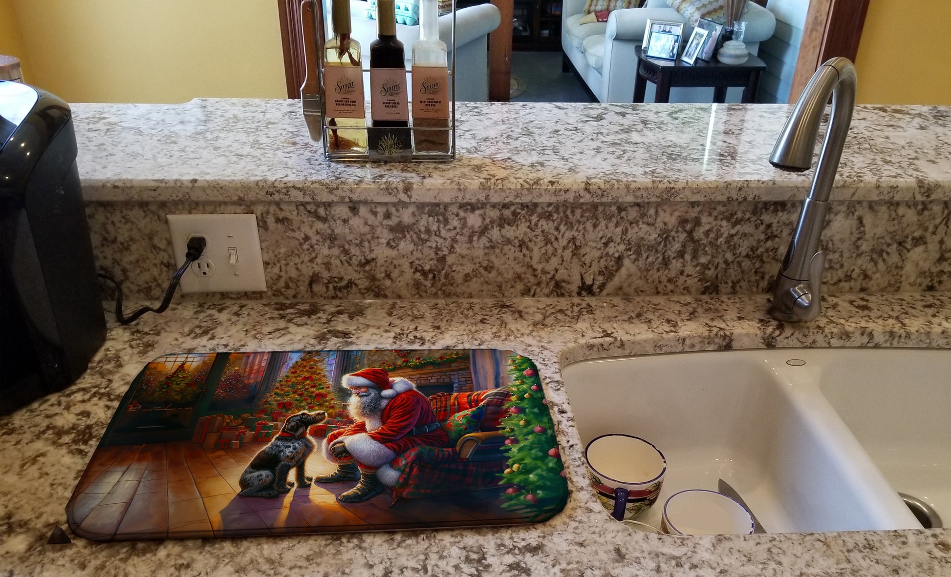 German Wirehaired Pointer and Santa Claus Dish Drying Mat