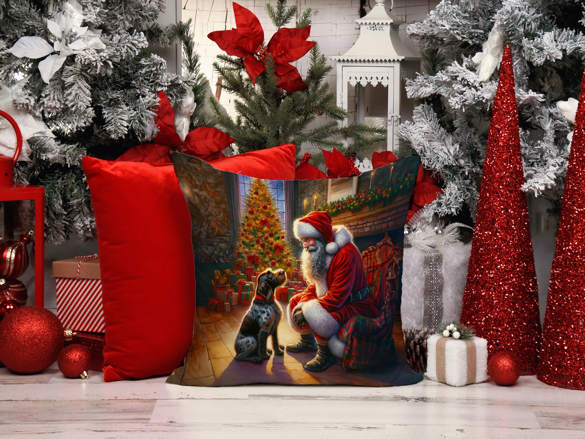 German Wirehaired Pointer and Santa Claus Throw Pillow