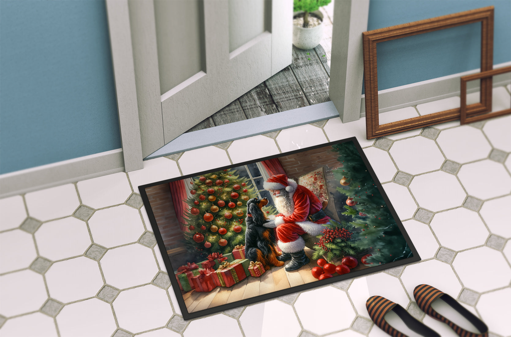 Doormat featuring breed specific Gordon Setter artwork. Celebrate Christmas with this Christmas Doormat. Welcome your guests in style with our Artwork Door Mat, designed to withstand almost any weather condition. This mat, measuring approximately 24 by 36 inches, is held together by durable black binding tape. Its top layer, composed of polyester felt, is dyed with the eye-catching image you see on the mat. A few layers below provide the mat with stability, while its rubber bottom is stamped to help prevent slipping and ensures safety. Our mat works wonderfully as both an indoor or outdoor door mat. For cleaning, simply hose it off with water or use a power washer - no need for any cleaner that produces suds. Avoid scrubbing with a brush, instead, opt for the vacuum on floor setting. Designed manufactured and printed in the USA, this mat is a perfect addition to your porch, outdoor kitchen, entryway, or any indoor space. Its unique design makes it a charming decorative rug that greets your guests and adds a stylish touch to your home decor.