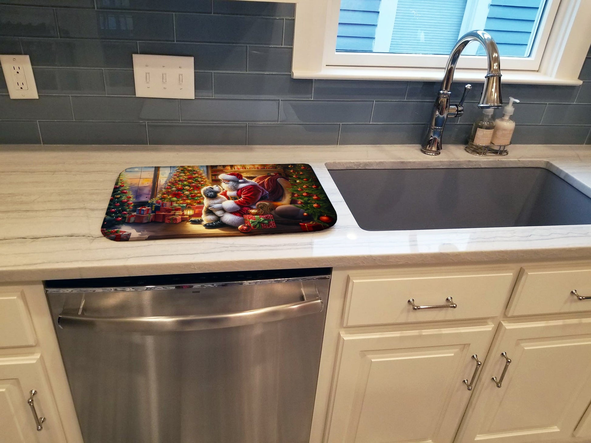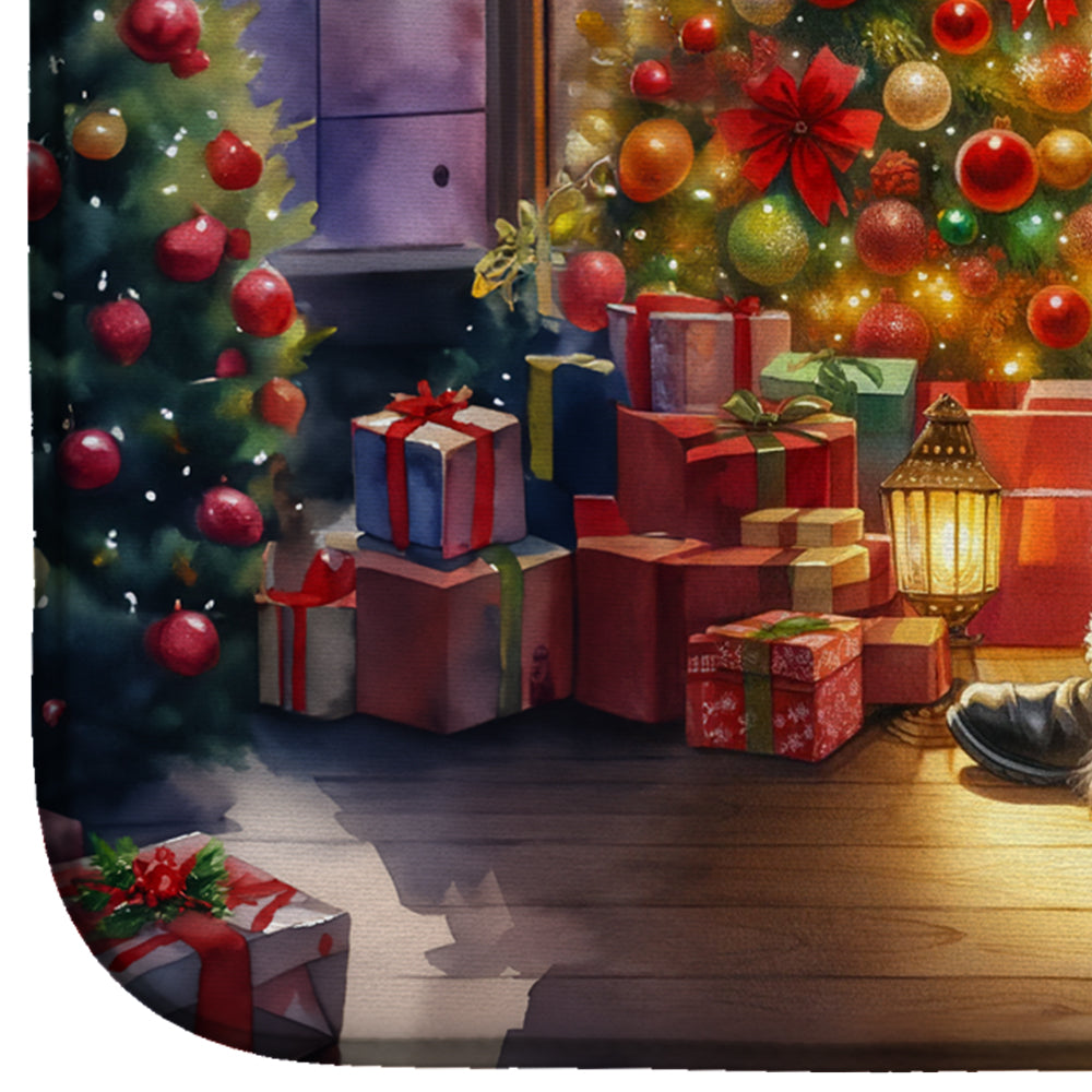 Dish Drying Mat featuring breed specific Havanese artwork. Celebrate Christmas with this Christmas Dish Drying Mat. Say goodbye to messy countertops and soggy dish towels with our innovative dish drying mat. Our high-quality dish drying pad is designed to keep your countertops dry while offering a stylish and efficient solution. Whether you're air drying dishes, glasses, stemware, silverware, pots, pans, bottles, or even fruits and vegetables, our dish mat is the perfect choice. The 14 inches x 22 inches size fits most counters and dish drying racks, and the non-slip design ensures stability. Made with water-absorbent polyester and a polyurethane foam insert, our dish drying mat is not only functional but also durable. It's machine washable and printed in the USA for long-lasting use. The beautiful artwork adds flair to your kitchen decor, making it a perfect housewarming gift or present for any occasion. Upgrade your kitchen experience with our absorbent and versatile dish drying mat.