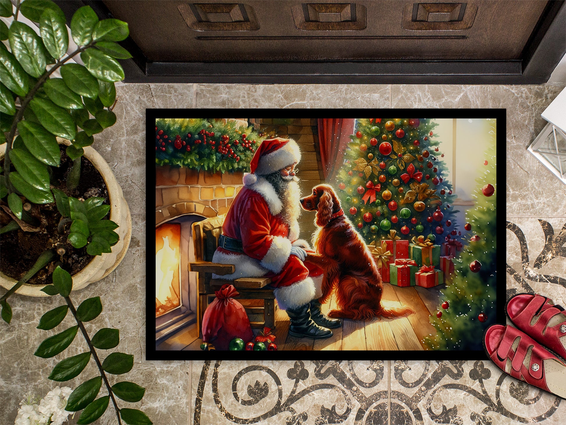 Doormat featuring breed specific Irish Setter artwork. Celebrate Christmas with this Christmas Doormat. Welcome your guests in style with our Artwork Door Mat, designed to withstand almost any weather condition. This mat, measuring approximately 24 by 36 inches, is held together by durable black binding tape. Its top layer, composed of polyester felt, is dyed with the eye-catching image you see on the mat. A few layers below provide the mat with stability, while its rubber bottom is stamped to help prevent slipping and ensures safety. Our mat works wonderfully as both an indoor or outdoor door mat. For cleaning, simply hose it off with water or use a power washer - no need for any cleaner that produces suds. Avoid scrubbing with a brush, instead, opt for the vacuum on floor setting. Designed manufactured and printed in the USA, this mat is a perfect addition to your porch, outdoor kitchen, entryway, or any indoor space. Its unique design makes it a charming decorative rug that greets your guests and adds a stylish touch to your home decor.