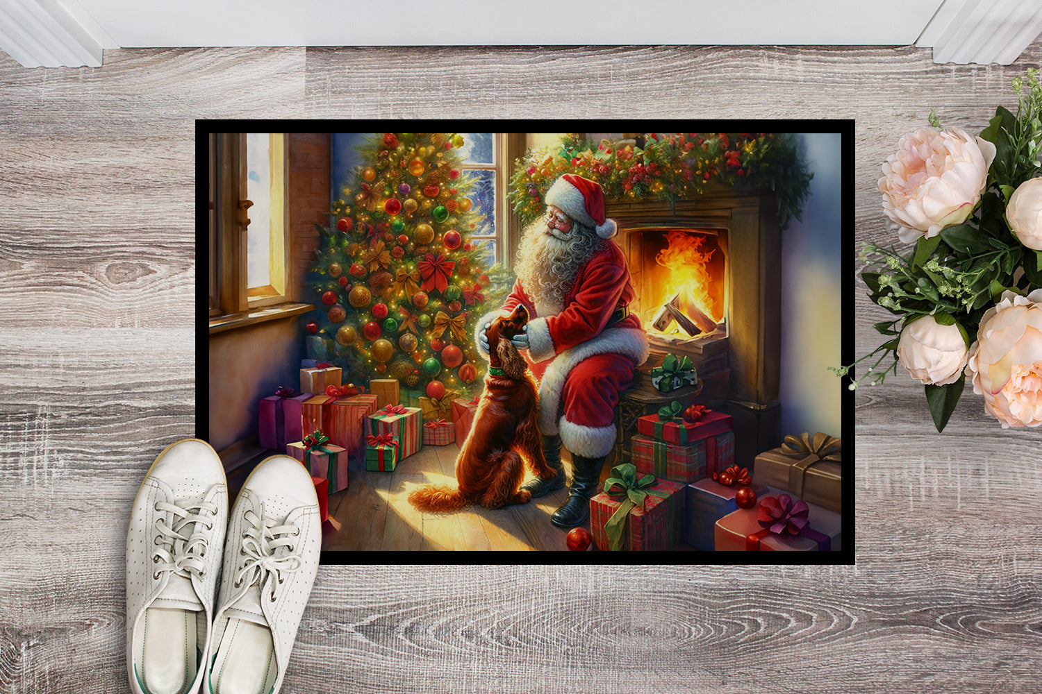 Irish Setter and Santa Claus Doormat